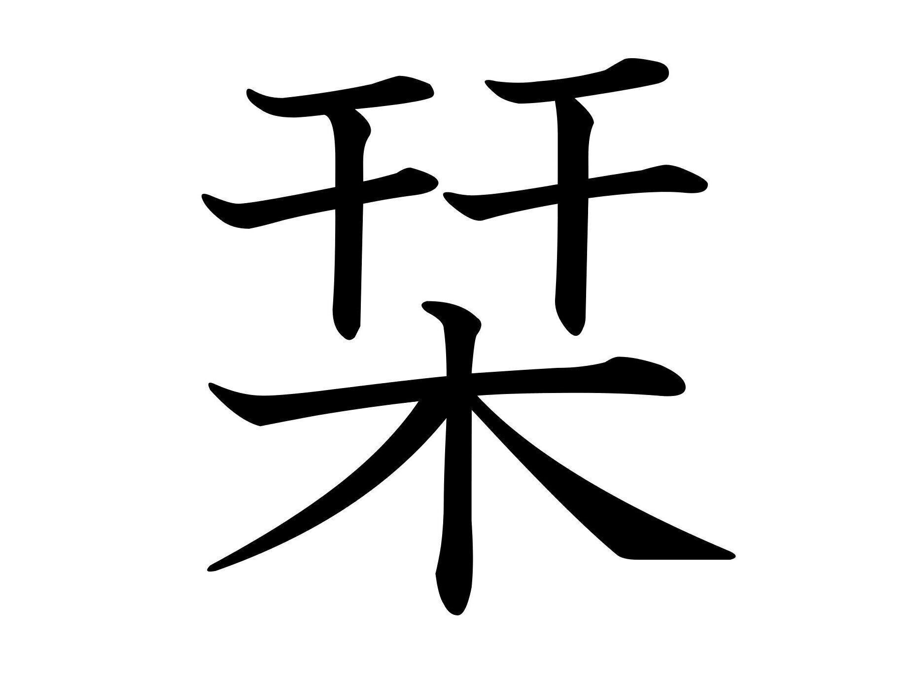 「干」の字を2つ並べた下に「木」がある「栞」という字。