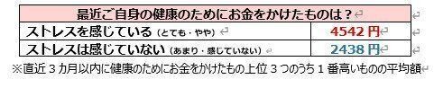 ストレスのない人と比べて約2倍という数字になり、お金をかけて健康対策をしていることがわかります。