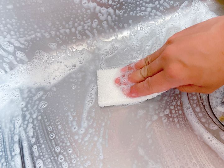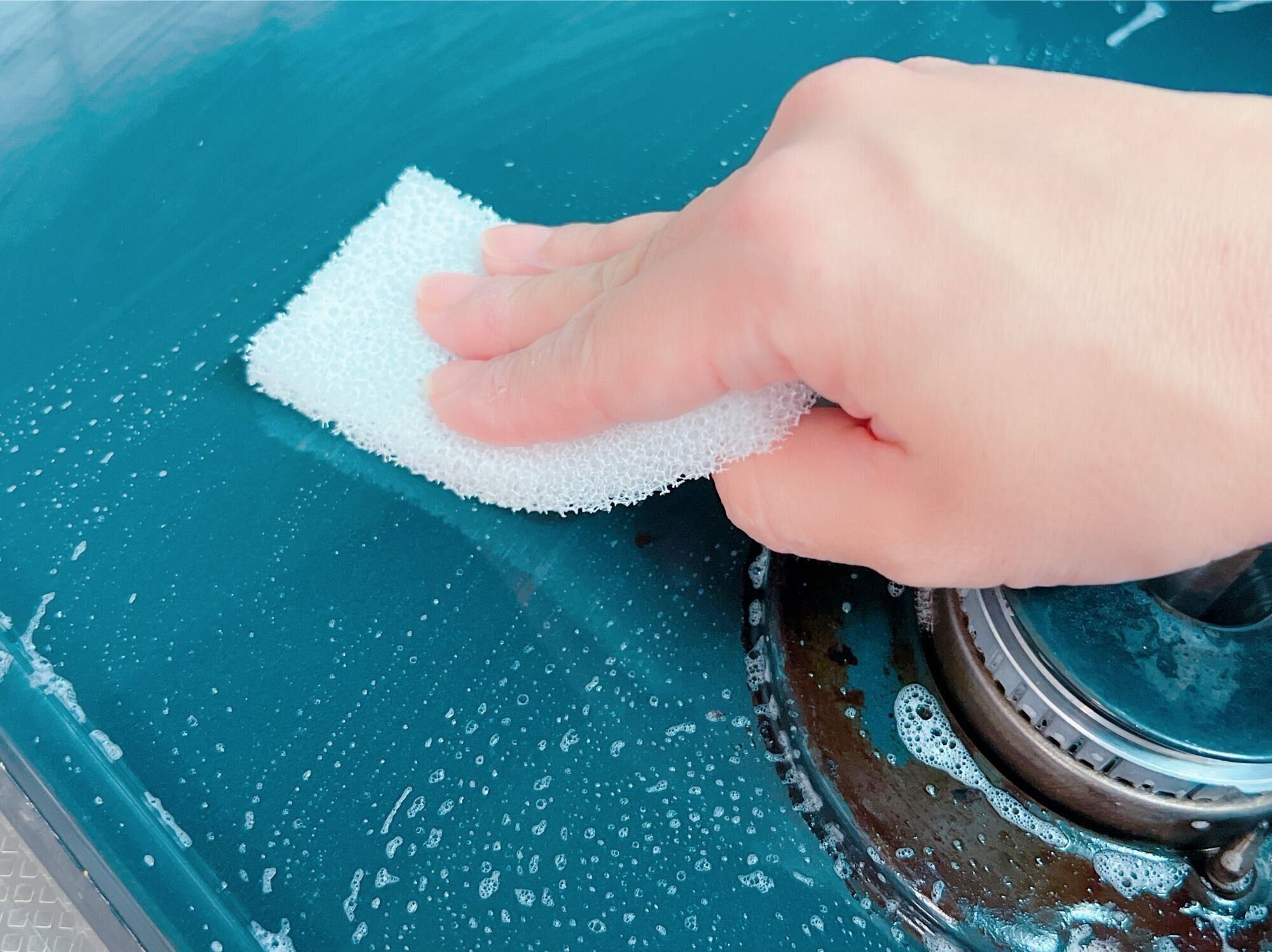 洗い物で使用したあとはキッチン掃除用のスポンジとして活躍します。コンロ周りの掃除にも便利です。