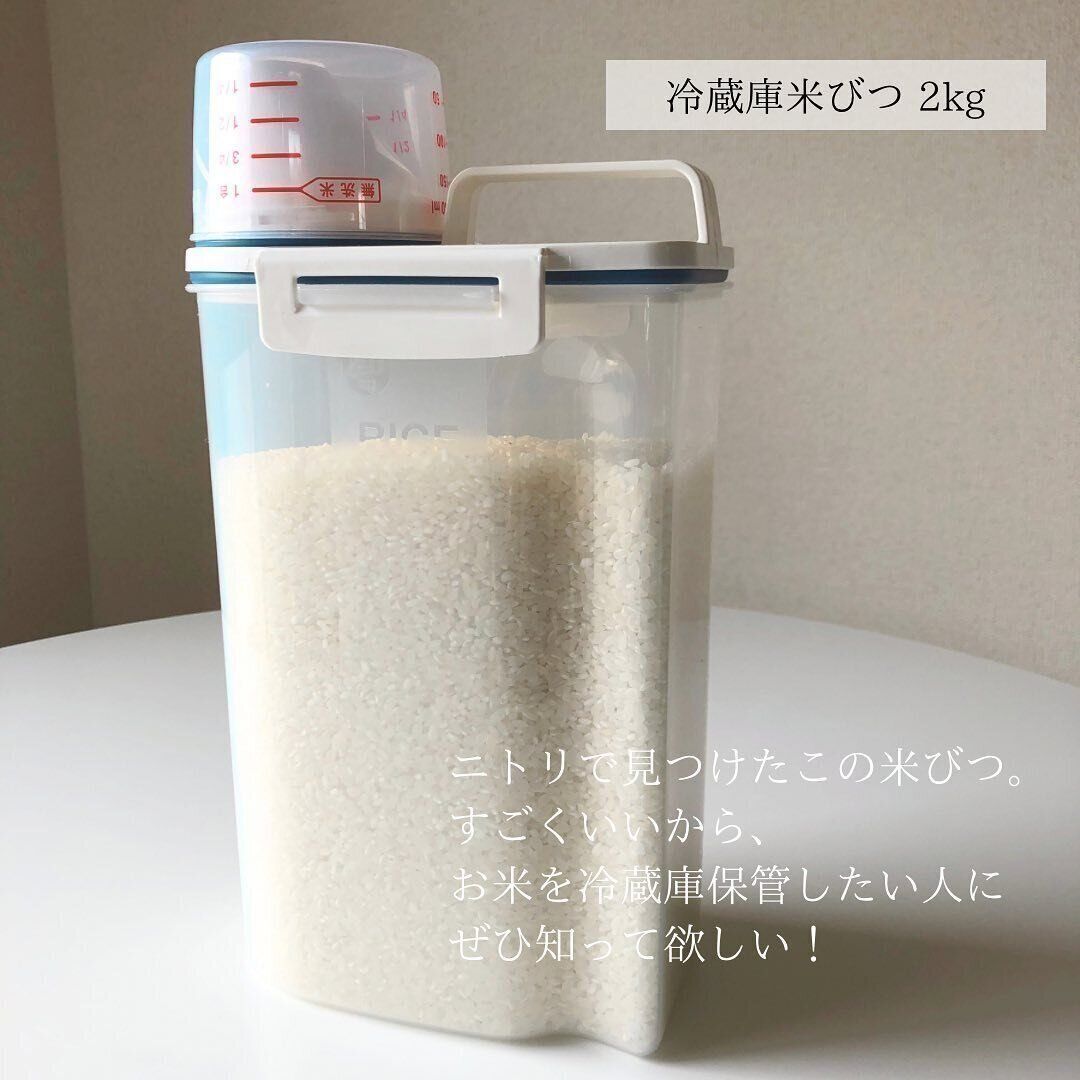 公式サイトによるとパッキンとロック、ハンドル、計量ができるカップも付いた冷蔵庫米びつ 。縦置き・横置きもできるので、収納スペースを有効活用したいかたにおすすめです。599円という手頃な価格でゲットできるのも◎。green_apple.lifeさんは「お米を冷蔵庫管理したい人にぜひ知って欲しい!」とコメントしています。