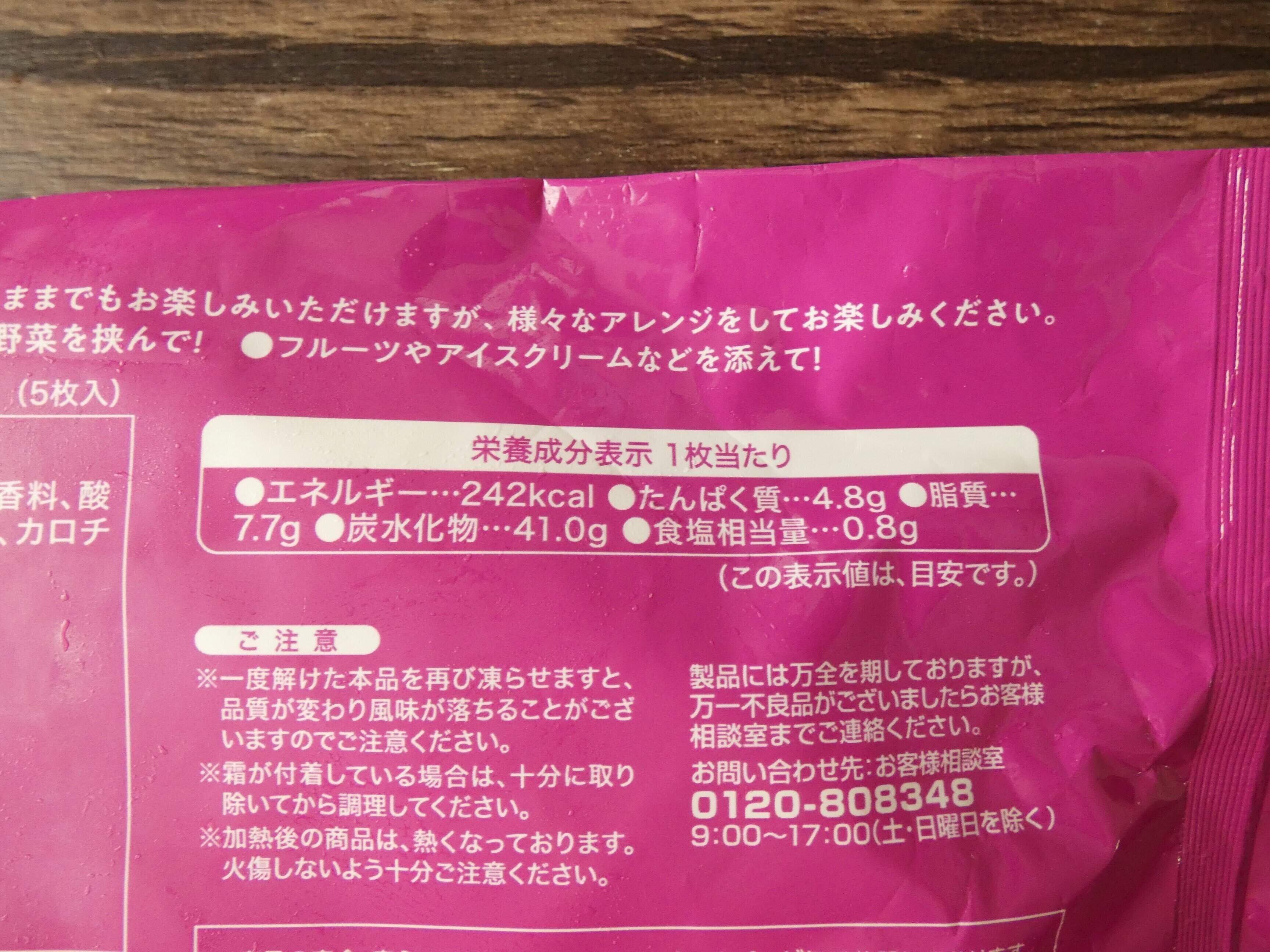 栄養成分表示を見ると1枚当たりのエネルギーは242kcal。