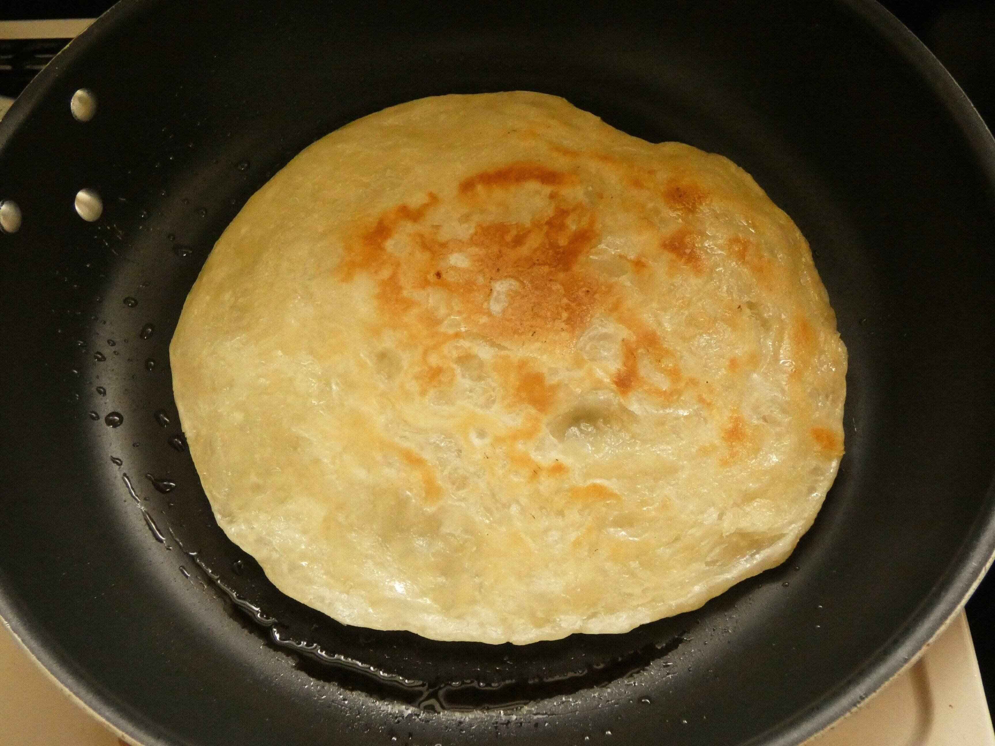 裏返してもう片面を約1分焼くと、生地に練り込んだマーガリンが溶け出して香ばしい香りがします。