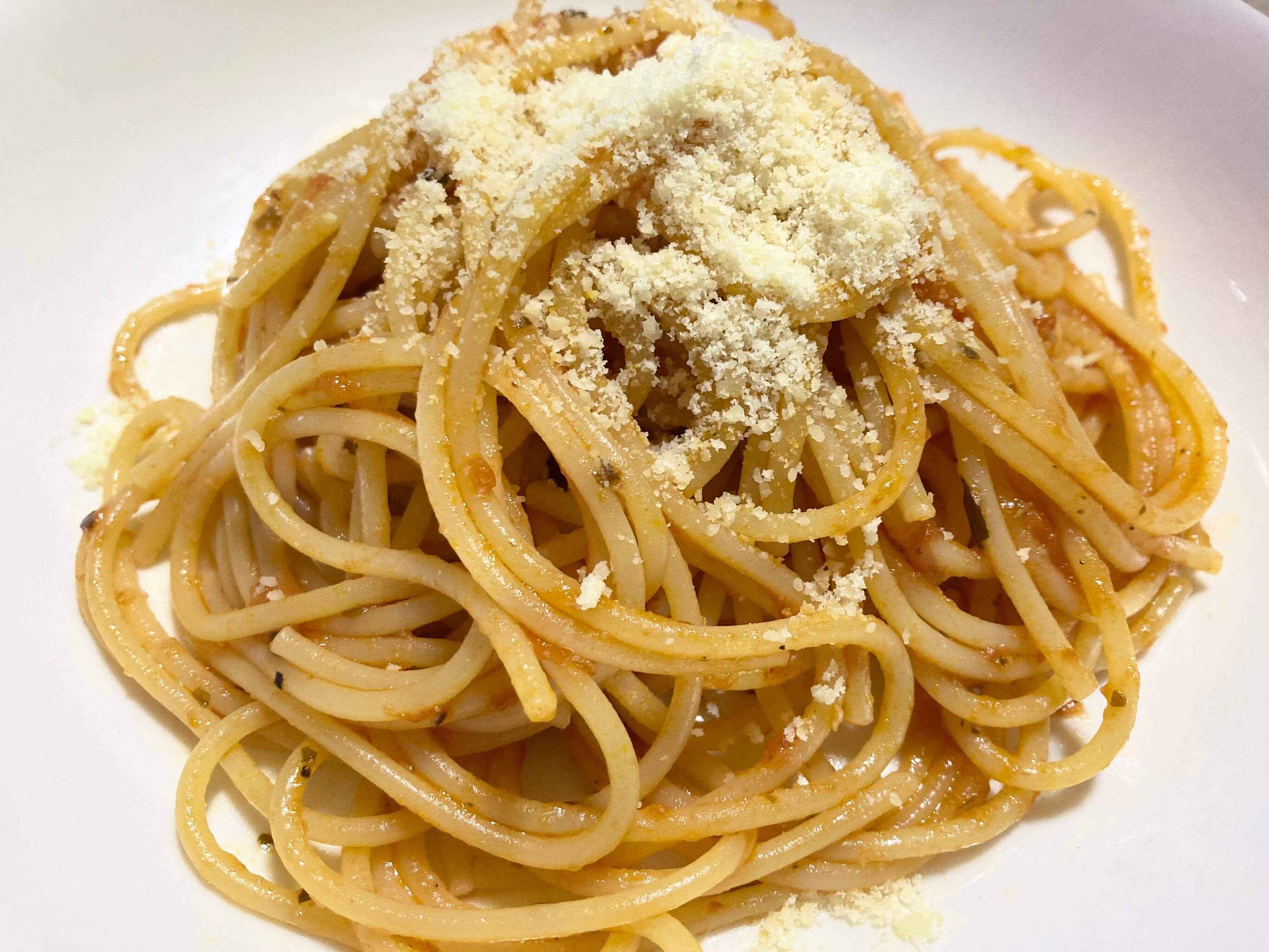 「ヨシダソース」のBBQ味におすすめのレシピはトマトソーススパゲティ。