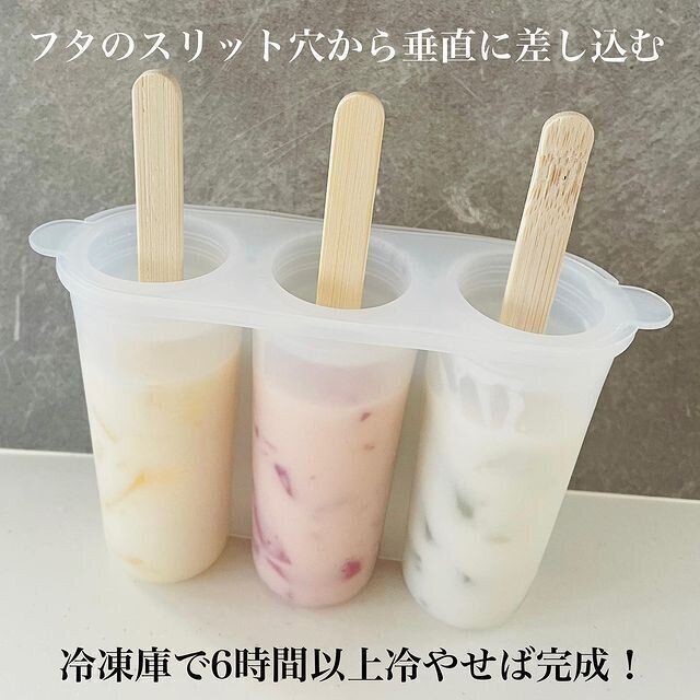 あとは冷凍庫で6時間以上冷やせばアイスバーの完成です。お好みのジュースを入れてつくれば、お子さまたちがよろこぶこと間違いなし!一緒につくるのも楽しそうですね。暑い季節にひとつはあると便利なアイテムです。