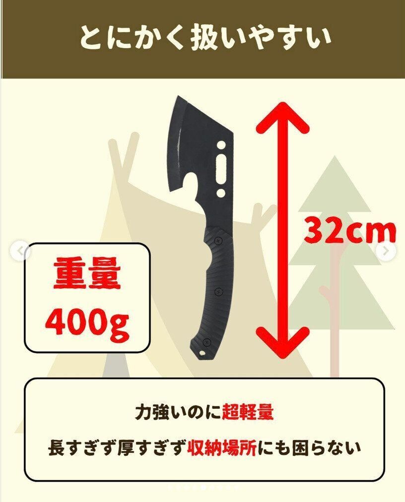 聞きなれない名前の「ハンドアッキス」、薪割りをするかたにはとてもちょうどいい商品です。鉈よりもパワーがあって、斧よりも持ち運びしやすいのがハンドアッキス。全長32cmのコンパクトさですが刃の部分にほどよい重みがあり、薪にしっかりと食い込みます。この性能で価格は驚きの1,780円です。