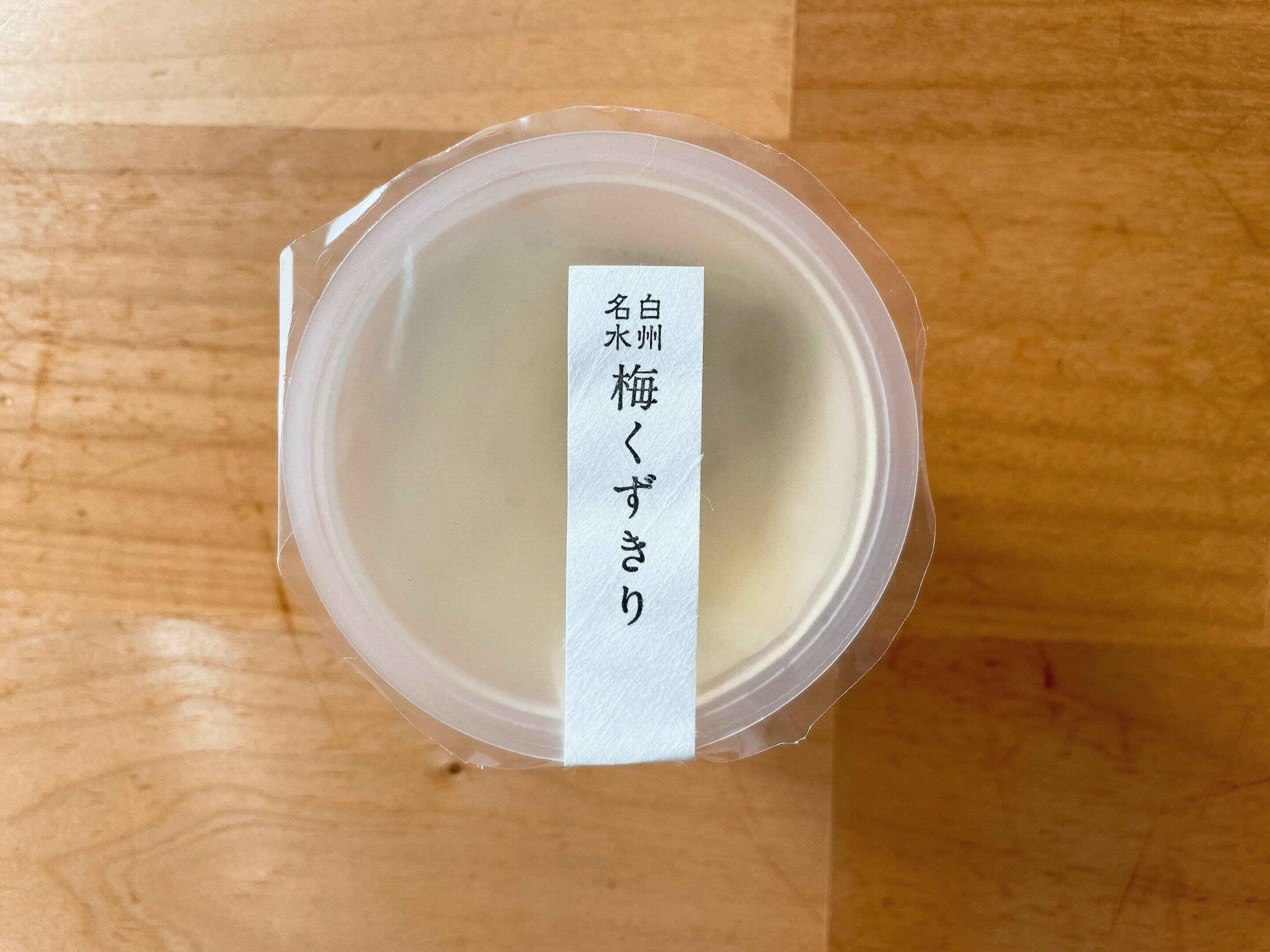 夏に欠かせない梅入り、見た目も涼しげな梅くずきり、1つ194円です。