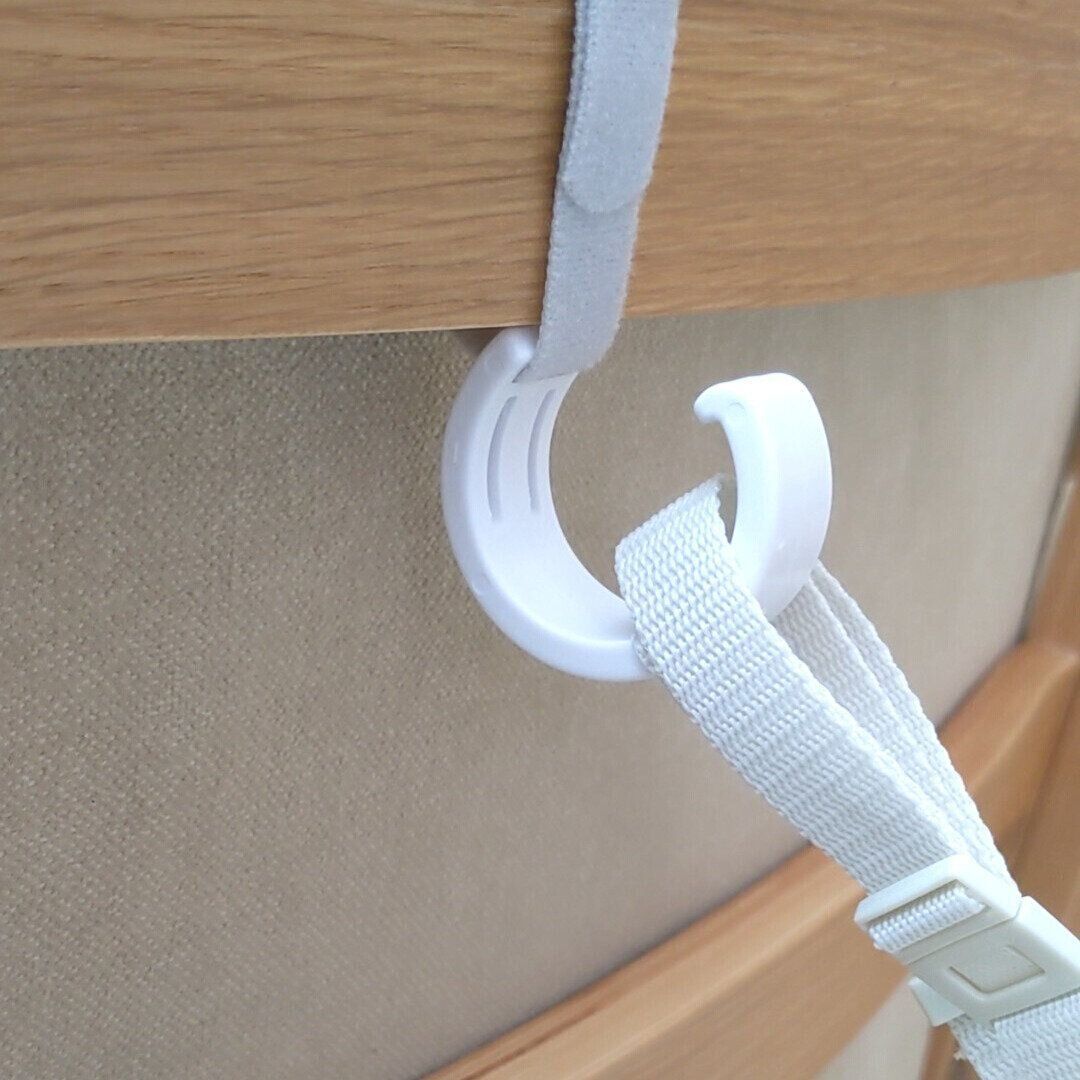 ベルトでしっかり固定できるので、フックが落ちません。