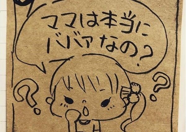 miacoroneさんは、娘さんから「ババア」の一言に愕然。素直な疑問におどろきだったできごとを、似顔絵と一緒に書いています。こどもは親の言うこと、やることをとってもよく憶えていますよね。