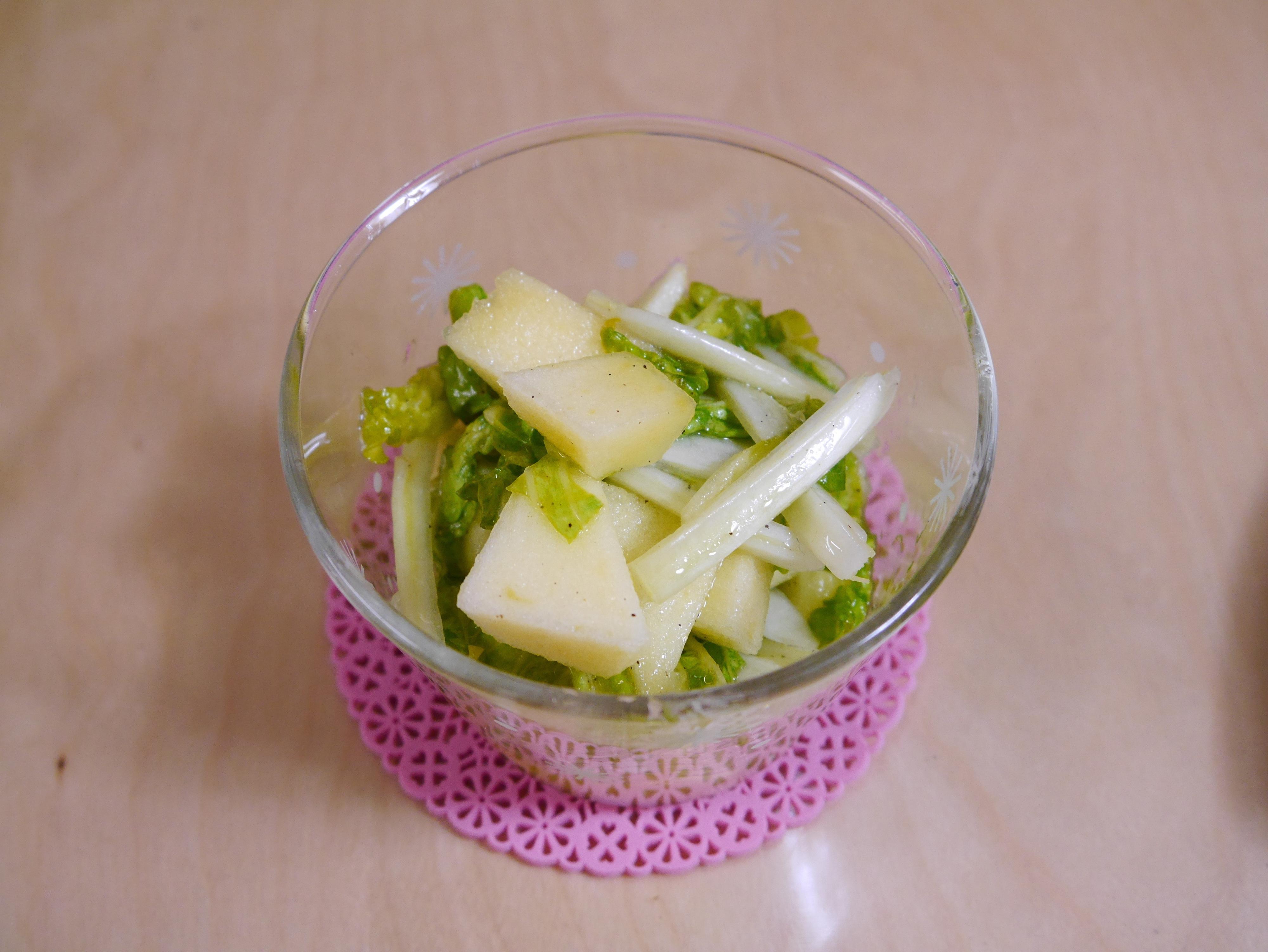 続いてみい太さんが使い切りを実践するのは白菜。「白菜なんてお鍋や煮物くらいしか思いつかないな……」という人も多いのでは? でも実は白菜でサラダまでつくれてしまうんです! みい太さんの定番サラダはりんごと白菜のサラダ。意外と知られていませんが、白菜は生でも食べられる野菜なんですよ。