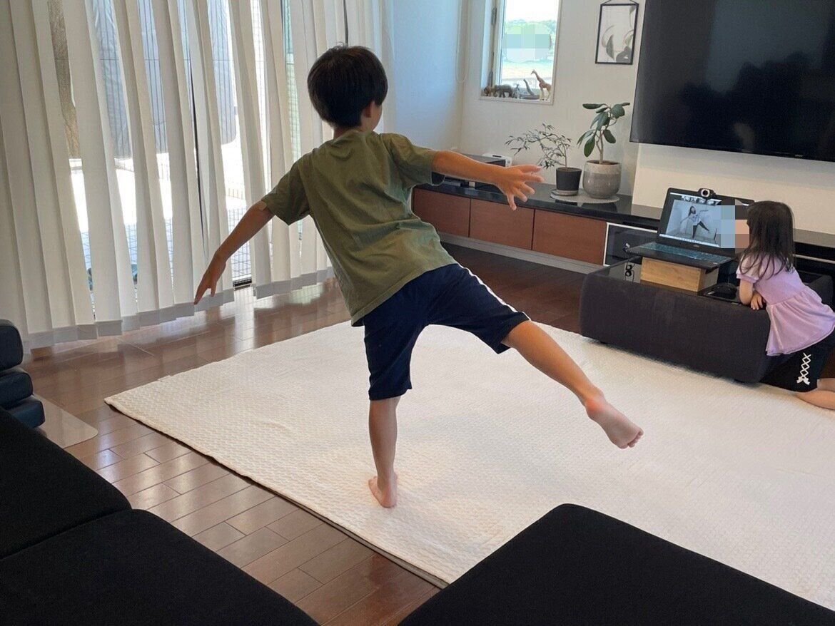 そして、習い事の送迎が精一杯で、どんなふうに参加しているかなどあまり見れないこともありますが、オンラインでのレッスンでは、キッチンに立ちながらでも、子どもが参加している様子を見守ることができます。下の子も横で一緒にダンスに参加し、とても楽しそうでした。