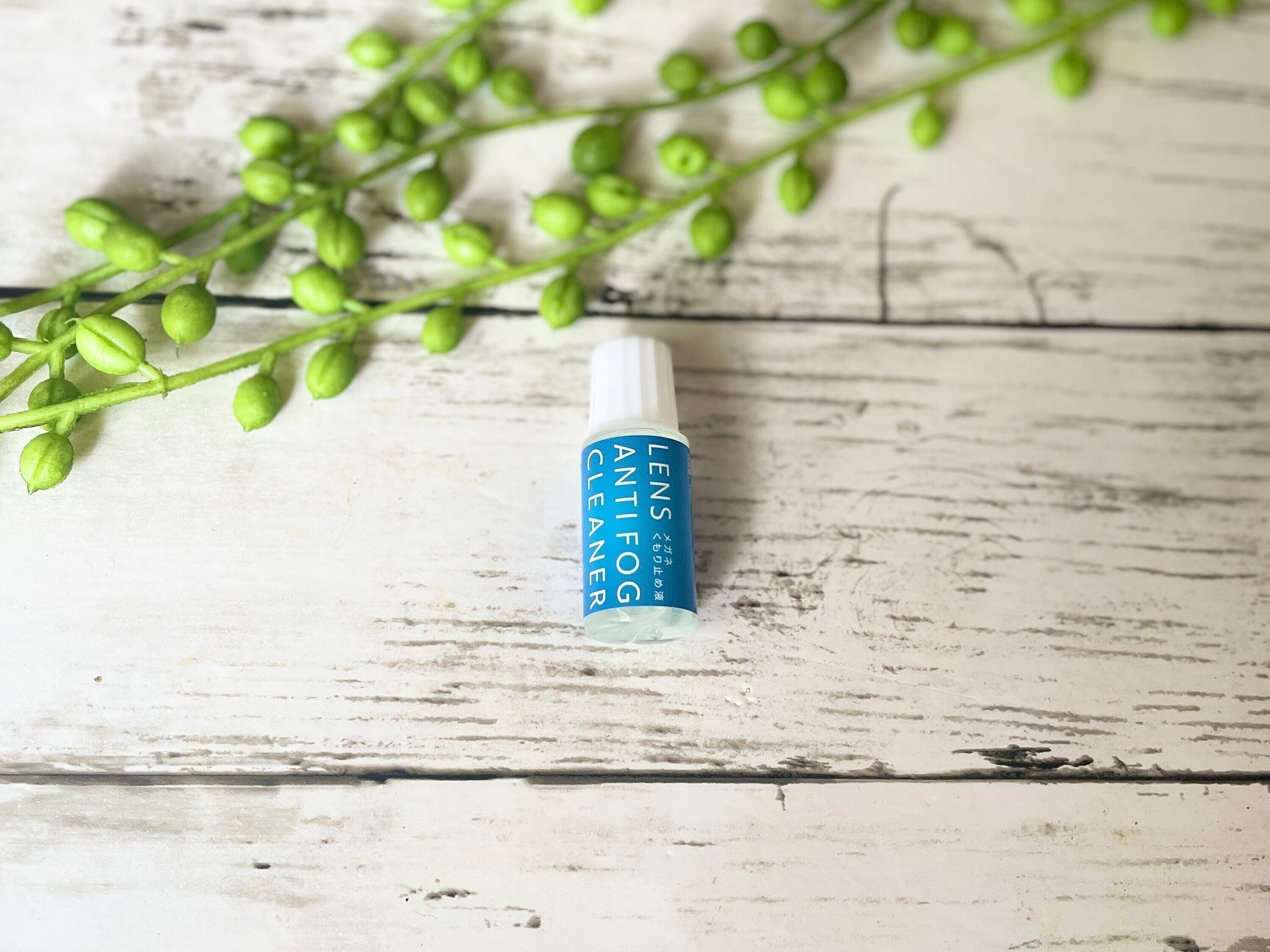 使い方は簡単で、レンズの片面に一滴たらして、ティッシュなどのやわらかいもので拭くだけ。レンズの汚れがひどい場合は、先にレンズをキレイにしてから使ってくださいね。