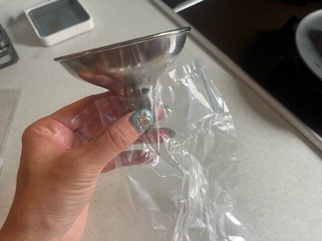 じょうごの口が入るようになっているのもとても便利です。今回はブラックのアイスコーヒーを入れて