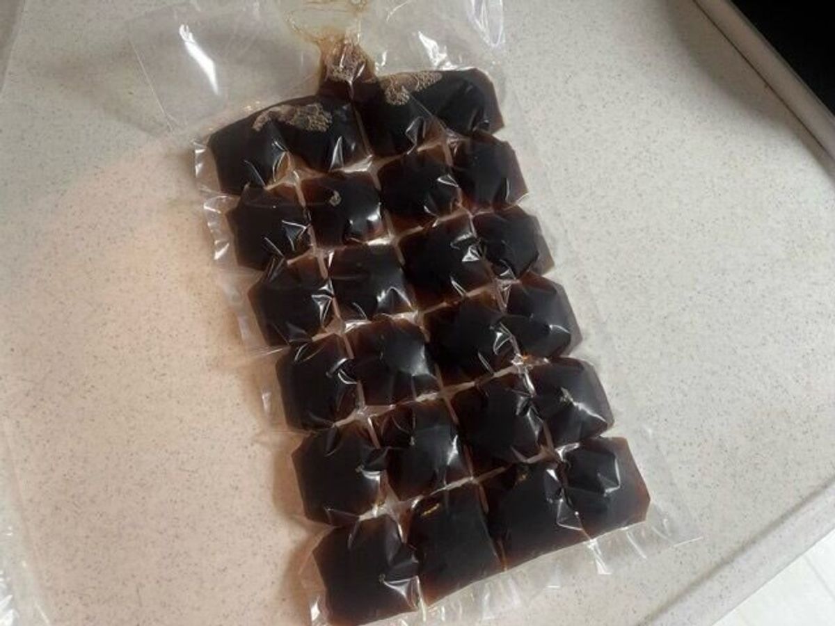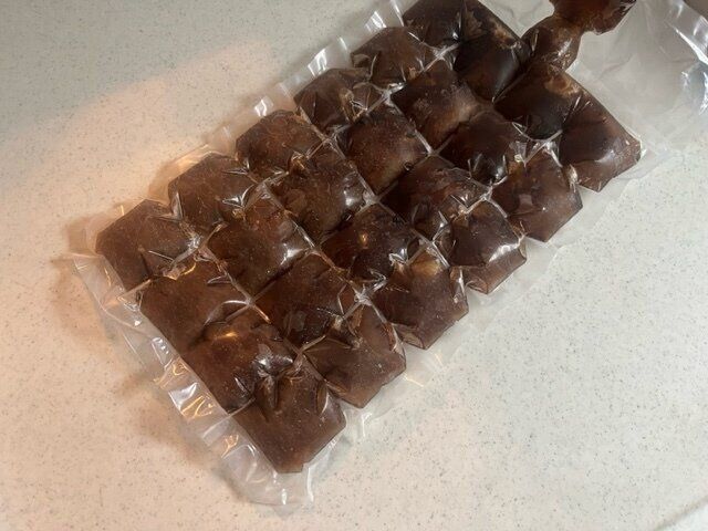 使いたい分だけはさみなどで切って使います。切るとするっと氷が出てきます。
