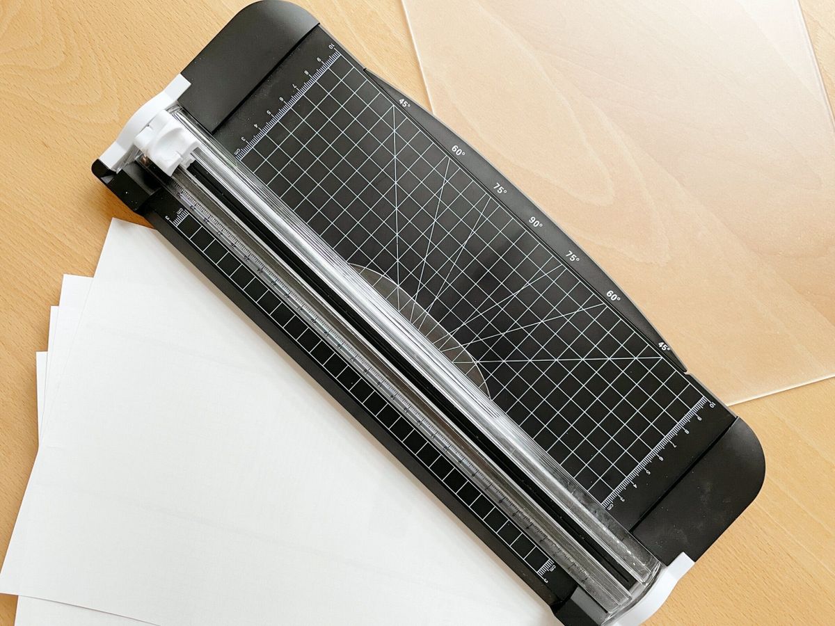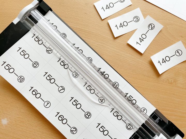 ラベルシールをカットする時や、1枚の用紙に複数文書が印刷されていてカットする場合に便利なのがペーパーカッター。我が家で使っているのはダイソーの分度器付きタイプ(660円)。会社にあるような本格的なペーパーカッターでありませんが、家での作業にはこれで十分。ハサミやカッターを使うよりも短時間でカットできて作業効率UPにつながります。