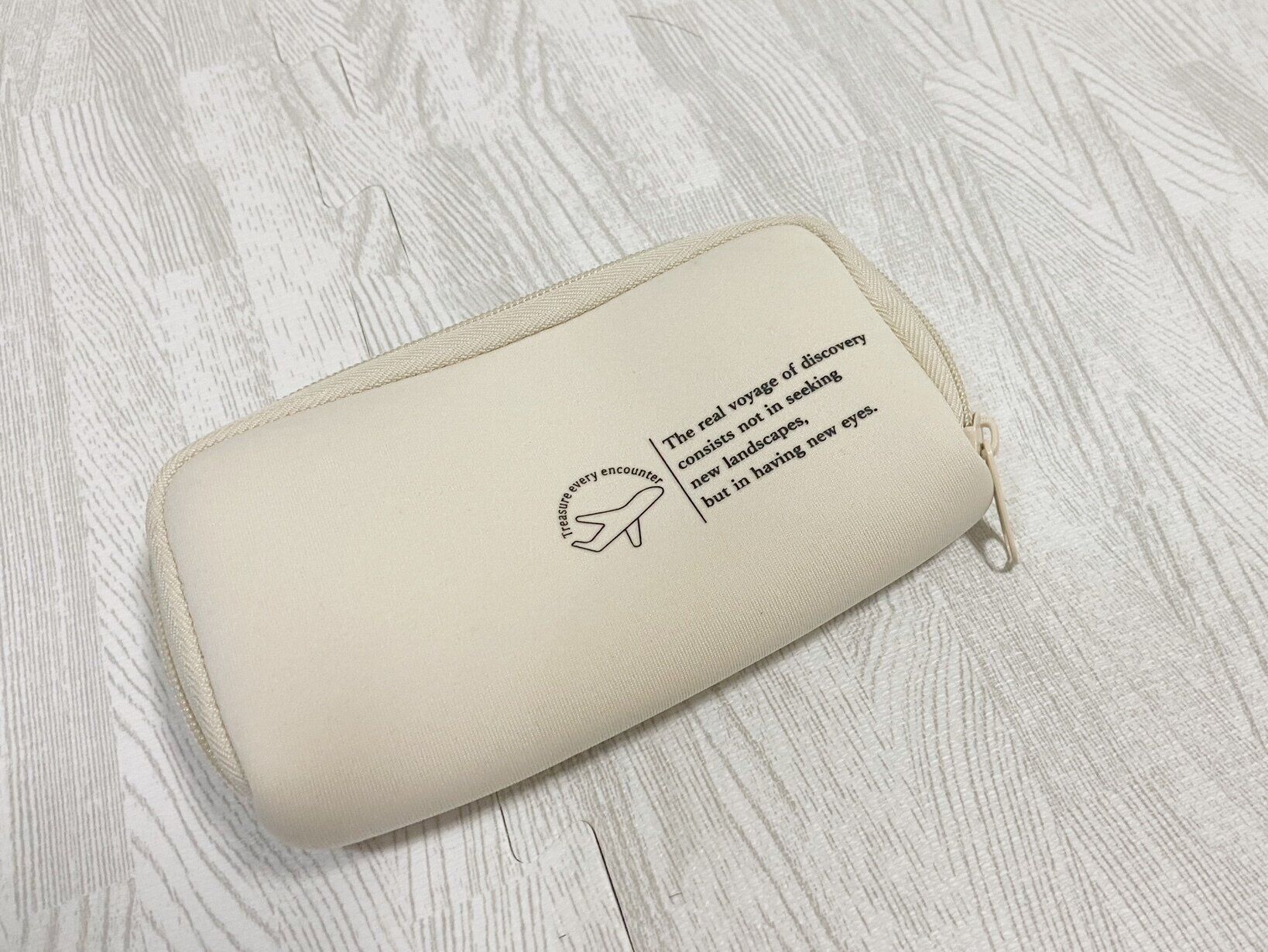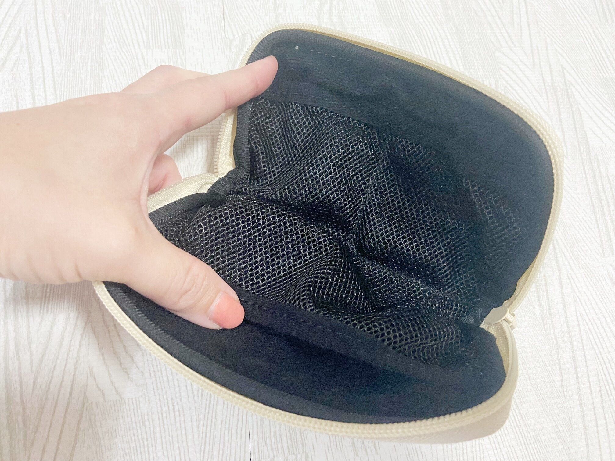 マニアが購入したJTB×3COINSコラボシリーズアイテム3つ目は「トラベルガジェットポーチ」(330円)です。筆者が購入したベージュの他にブラックもあります。お出かけの必需品であるモバイルバッテリーなどガジェットアイテムを収納するのに最適な素材感のポーチです。