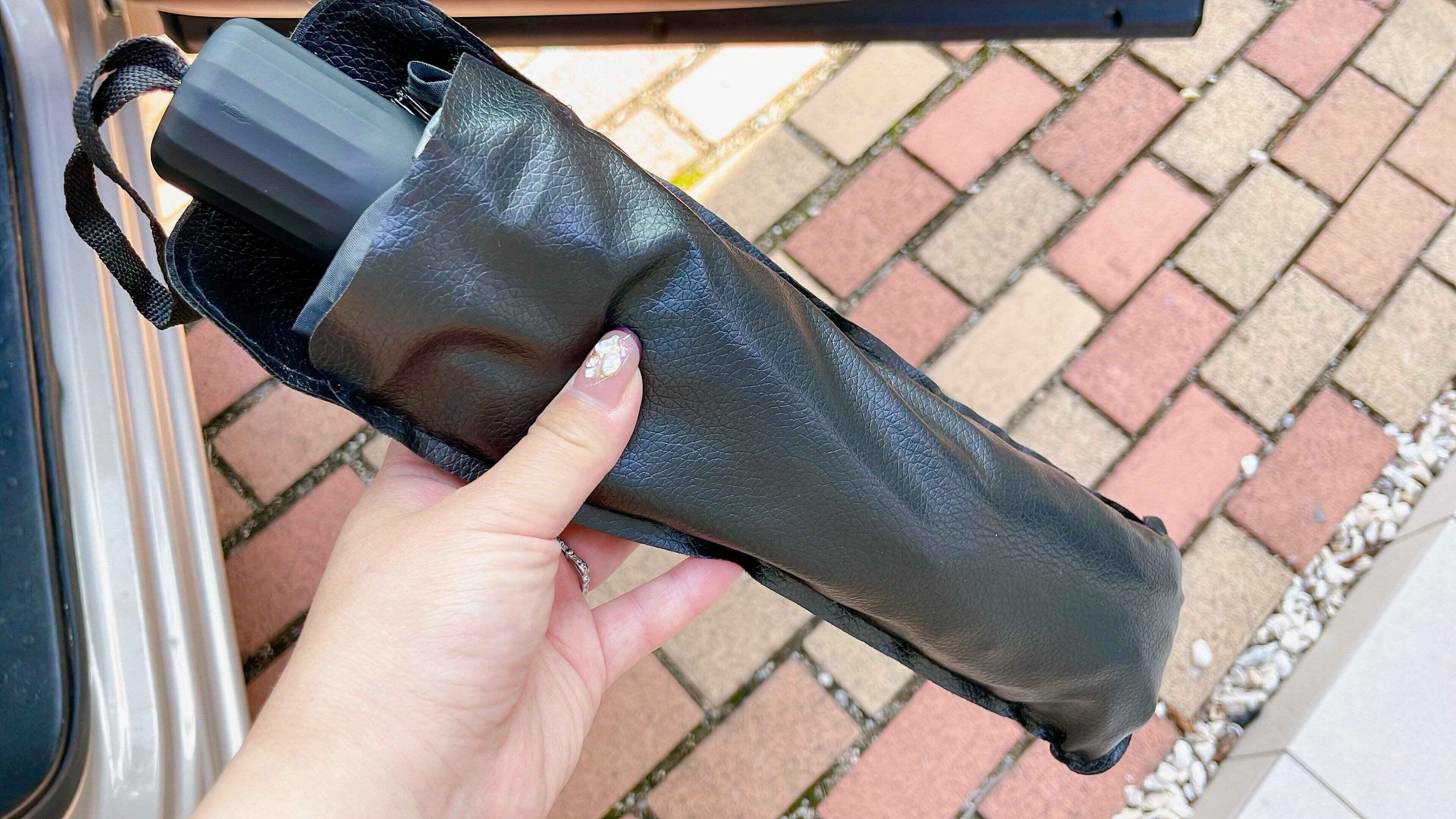 私の定位置は助手席の収納スペースに置いています。車のドアポケットに立てて入れるのもいいかもしれません。シンプルな見た目でコンパクトに収まるのも車という限られたスペースでは助かるポイント。