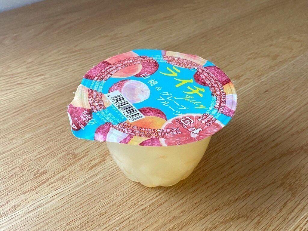 白桃は小さめにカットされていますがしっかりと食感があり、ジュレのような柔らかいゼリーのアクセントになっています。グレープフルーツの味は控えめでほんのり苦みを感じる程度。爽やかで夏にピッタリの味わいなので、230g入っていてもペロリと食べられます。