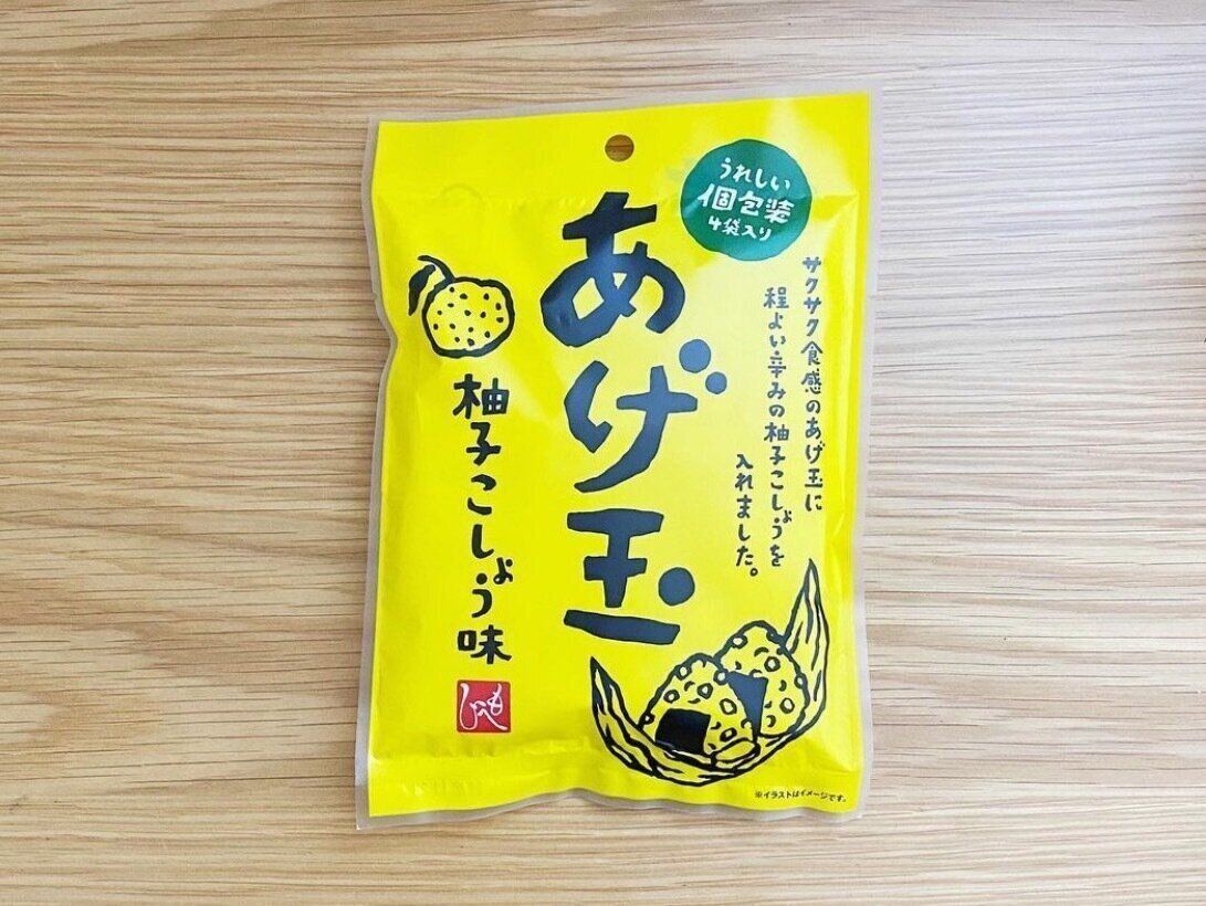 爽やかな辛みの柚子胡椒をきかせた一風変わったあげ玉です。伝統の手揚げ製法で香ばしくサクサクに仕上げているんだそう。個包装になって4袋入っているので、いつでもサクサク食感を楽しめます。