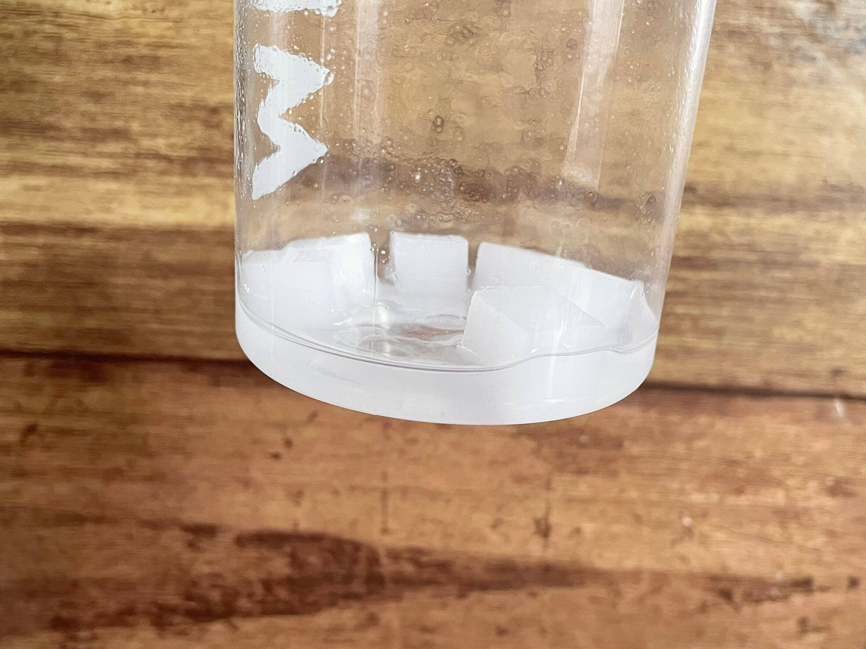 さっそく「振るピカ」でボトルを洗ってみます。洗うボトルは、セリアで販売されているトライタン製のドリンクボトルです。