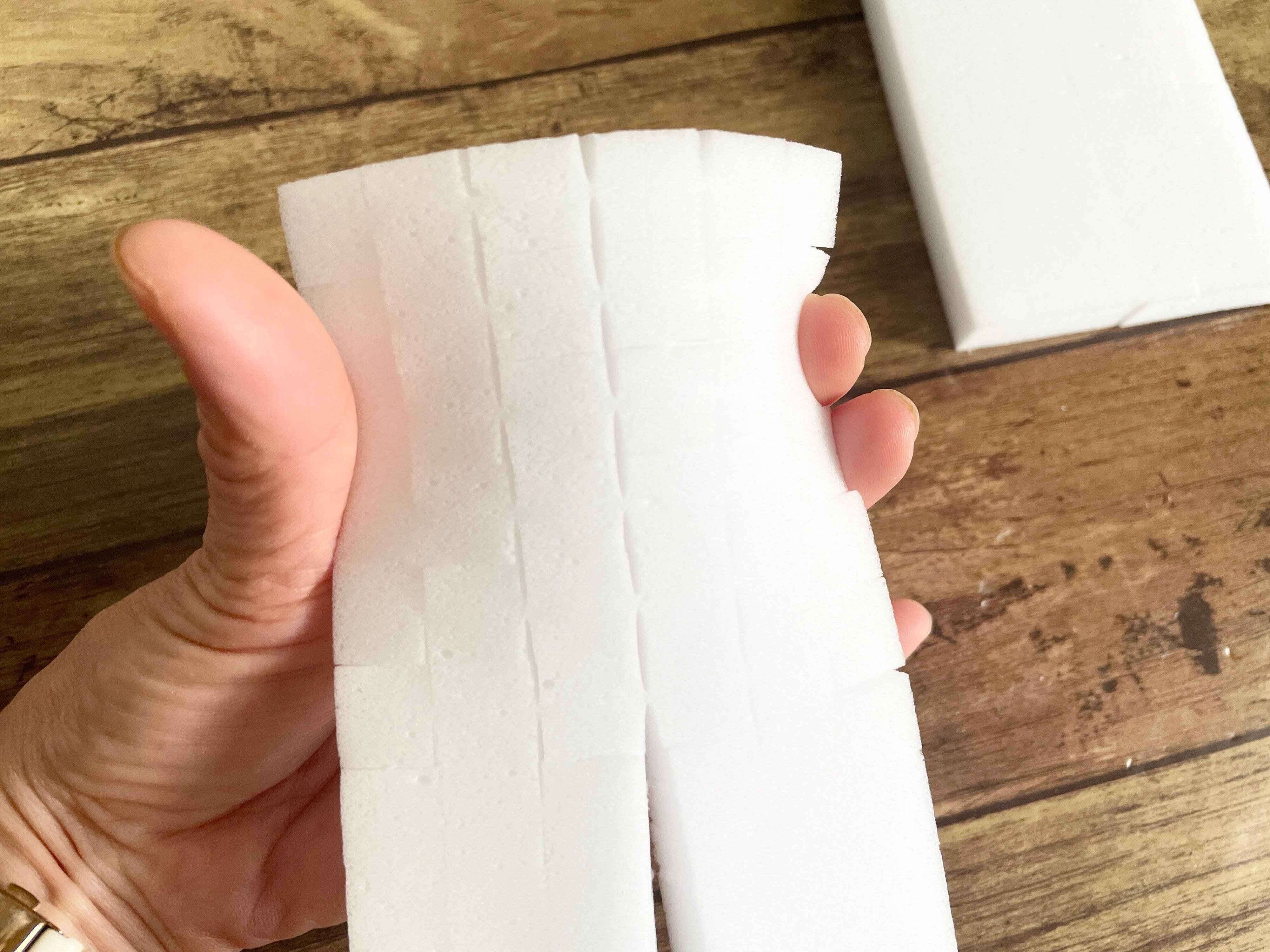 スポンジには切れ目が入っており、切り離すと1.3cm角の小さいスポンジが120個になります。