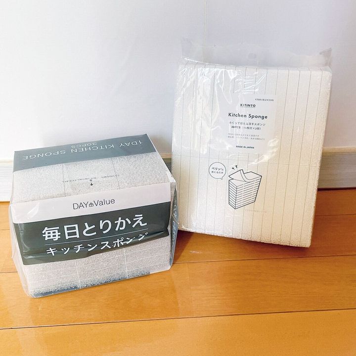 そこで今回は、整理収納アドバイザーで100均を始めとしたプチプラアイテムにも詳しいライターの山岡さくらさんに、3COINSの「めくって使える薄手スポンジ」と、ニトリの「毎日とりかえキッチンスポンジ」の使い勝手、使い心地の比較をしてもらいました。