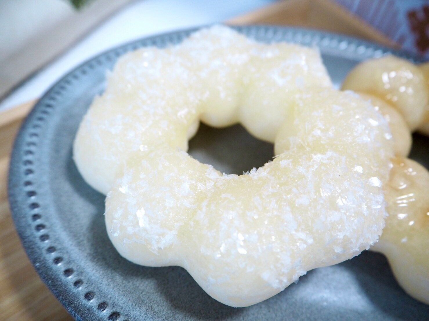 生地にグレーズをつけて、その上からシュガーをまぶした、4つの中では1番シンプルな白いポン・デ・リングです。