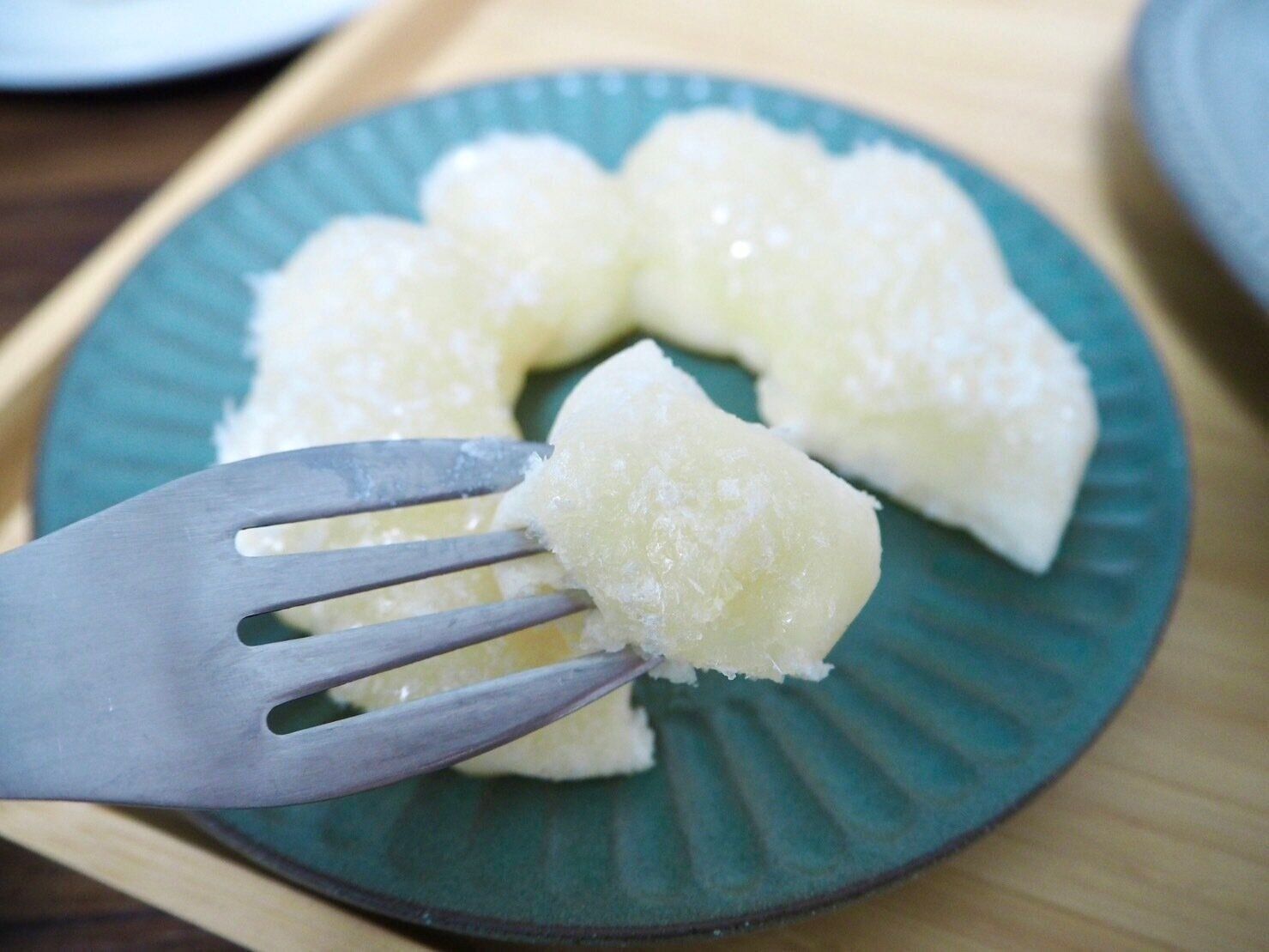 生地は柔らかいのですが、フォークで切ろうと思ってもなかなか切れないほどもちもちで、ドーナツでありながらお餅を食べているような不思議な感覚になります。