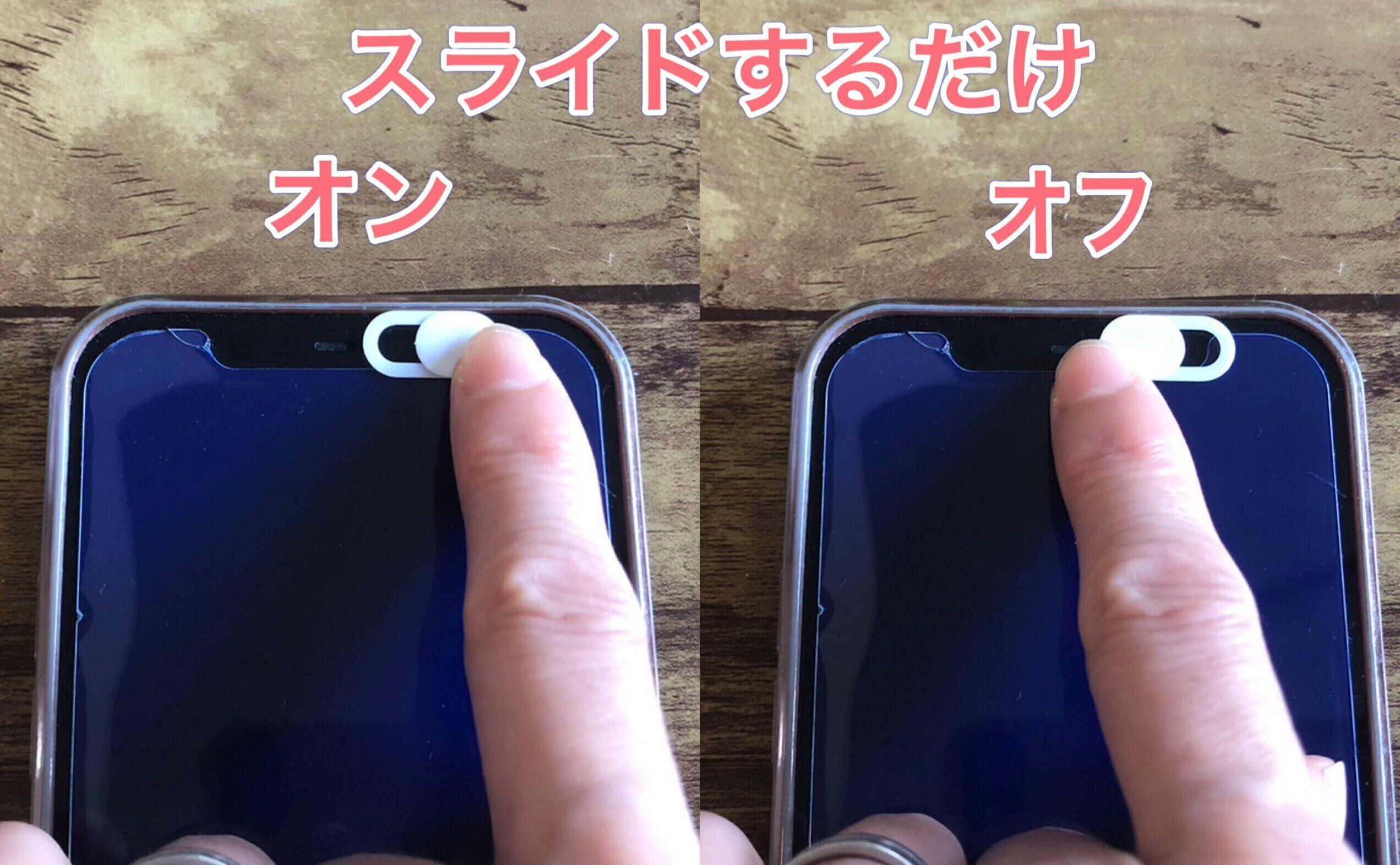 こちらは、スライド式になっていて貼ったままオンとオフの切り替えが可能。すぐ切り替えられるため顔認証のスマホでも煩わしさがありません。