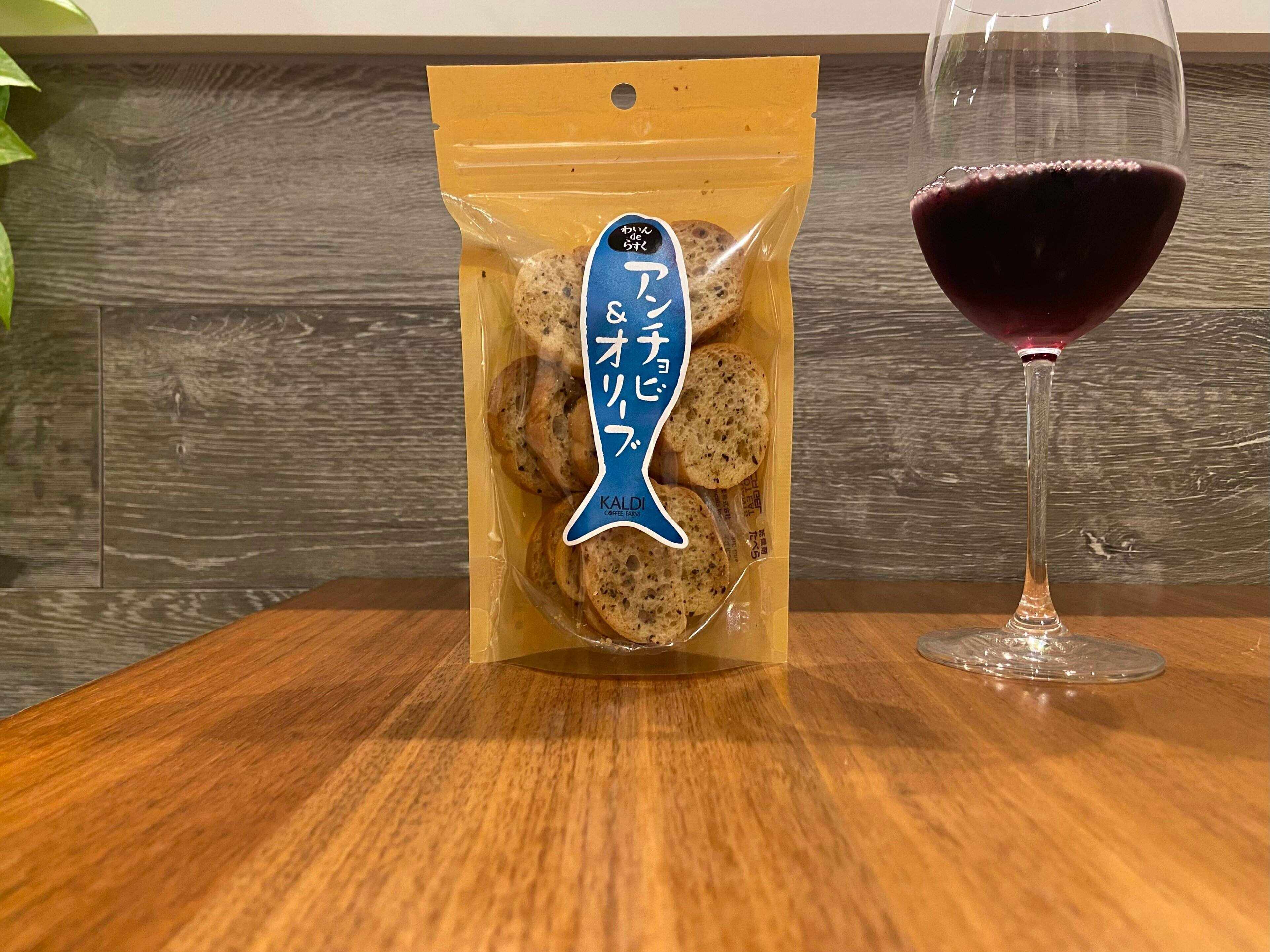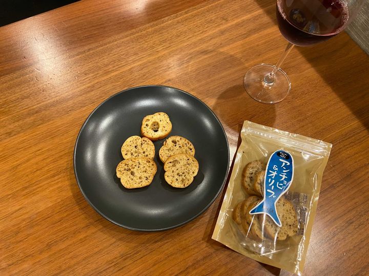 「わいんdeらすく アンチョビ&オリーブ」名前の通り、ワインとの相性は抜群。おいしいおつまみ。