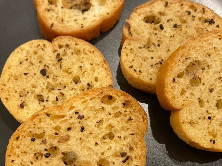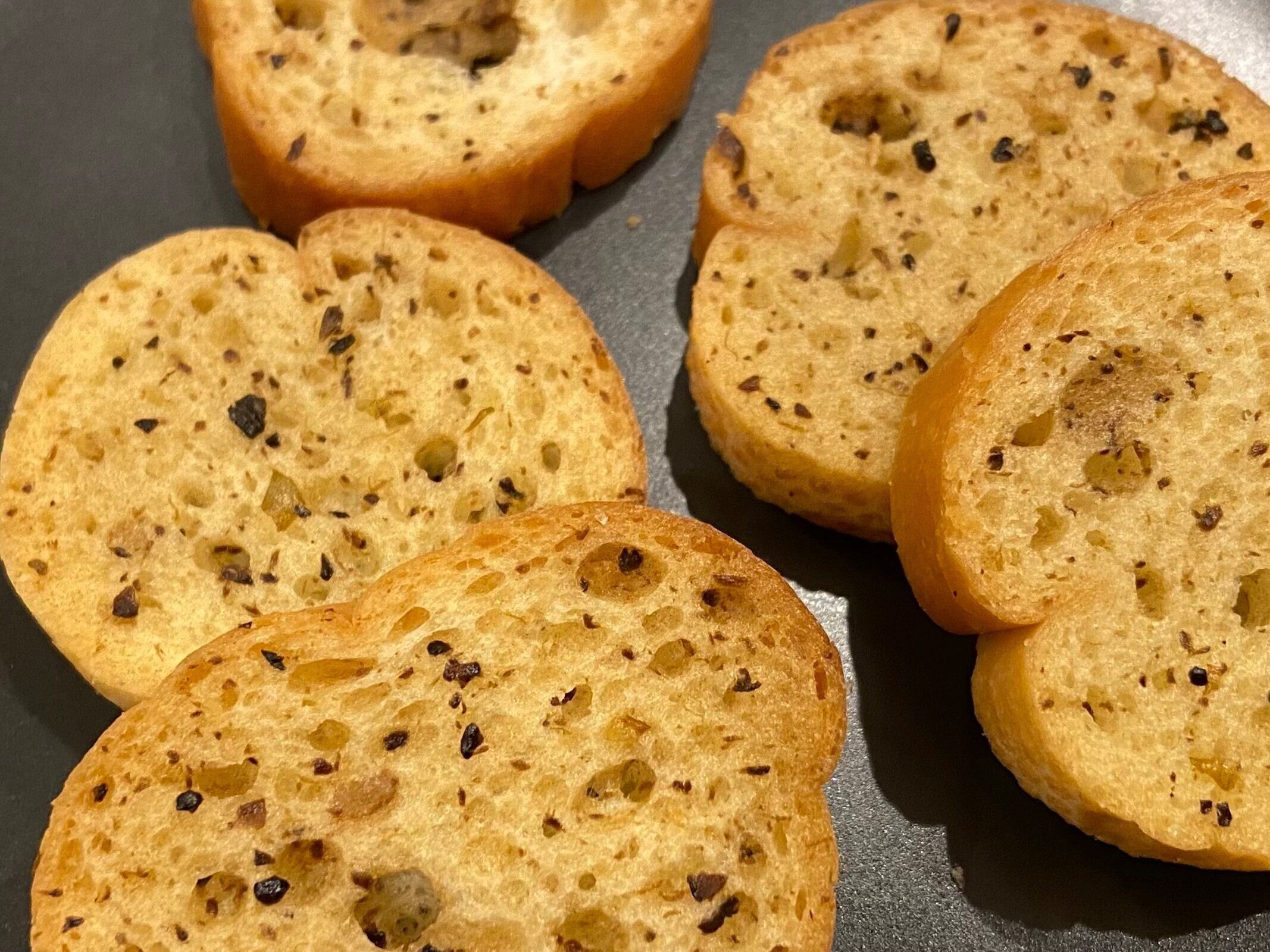 アンチョビのいい香りとラスクに染み込みうまさをプラスしてくれているガーリック、オリーブの風味が絶妙。