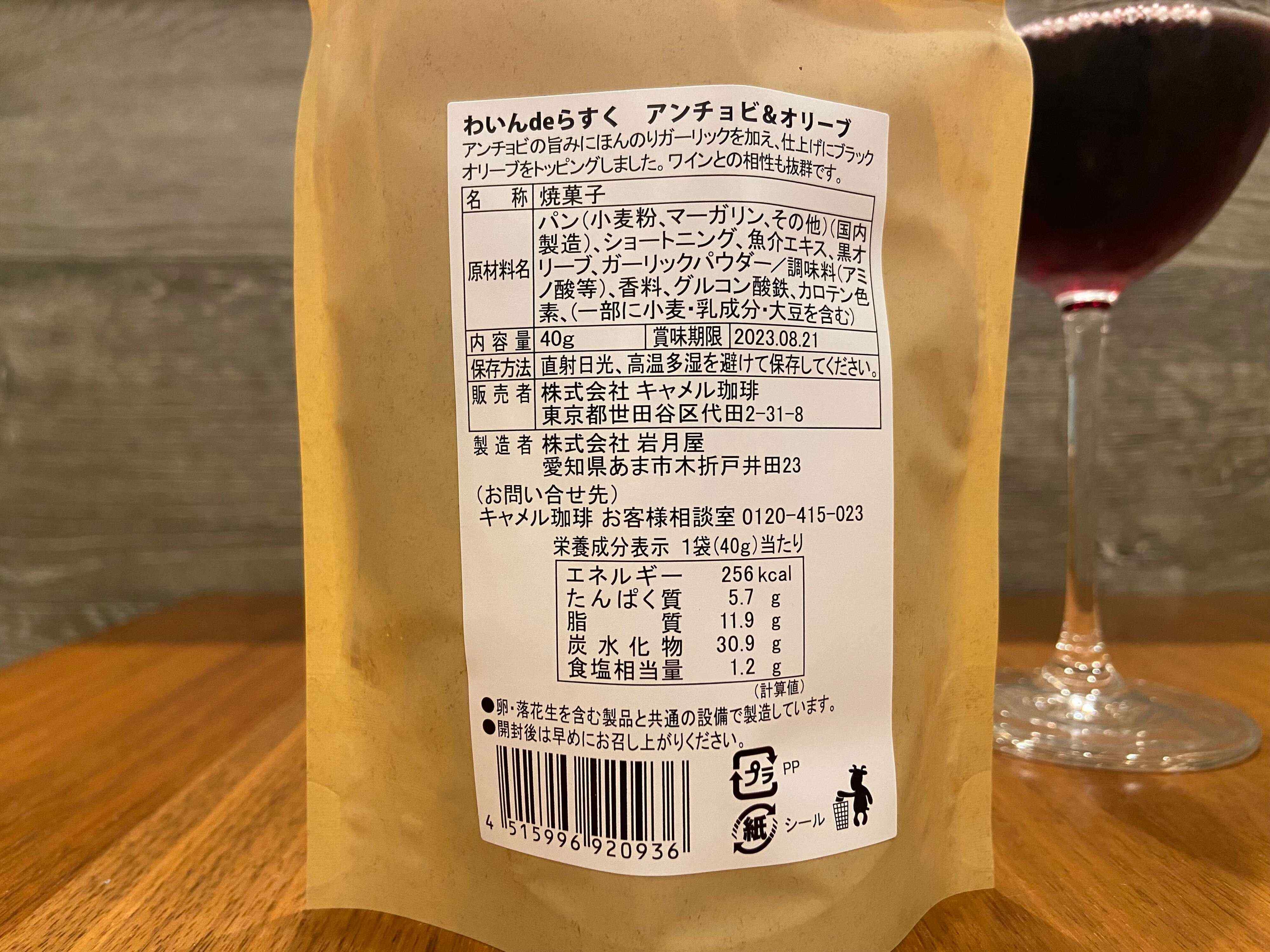 家でお酒を飲むときはもちろん、お友達の家などにお呼ばれするときに赤ワインとわいんdeらすく「アンチョビ&オリーブ」を手土産に持っていくのもアリだと思います。