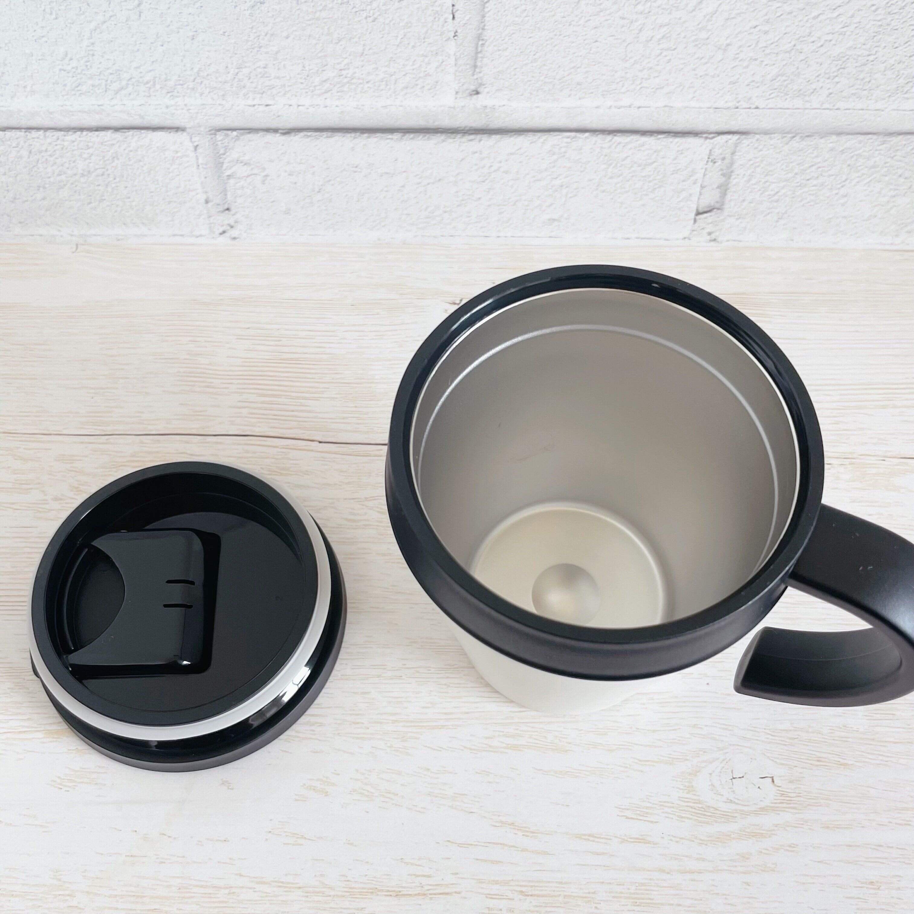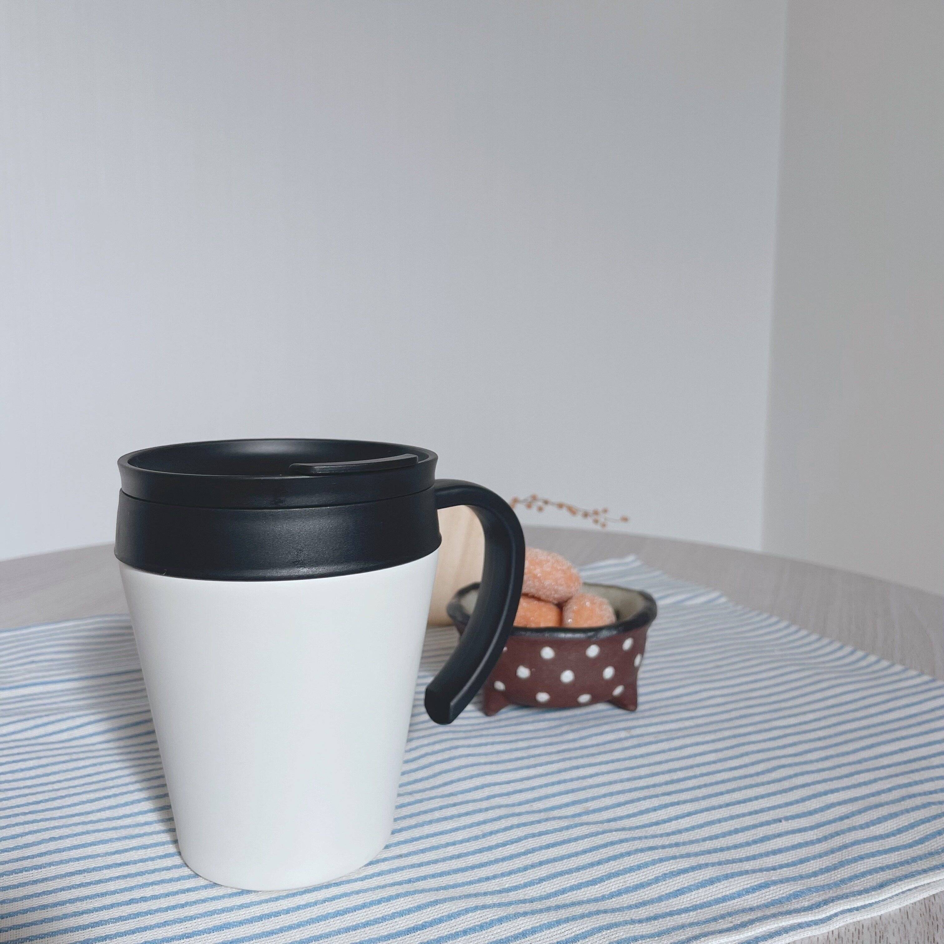 ニトリの「ステンレスマグ」は、フタつきなので保冷、保温効果も長続きし、ホコリの侵入防止にもなって、時間がたってもおいしいコーヒーが飲めます。