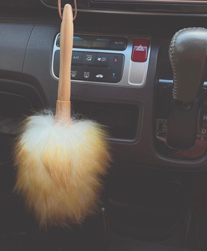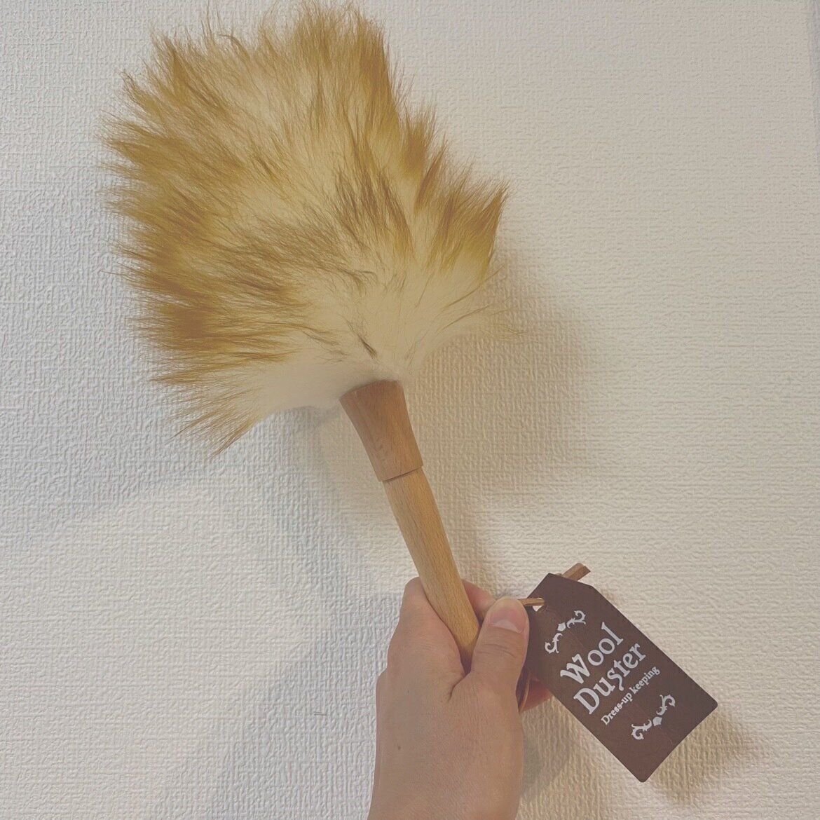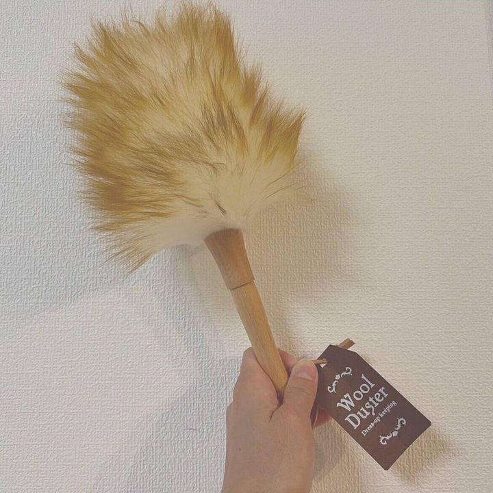 天然木の柄と羊毛100%で作られているホコリ取りです。