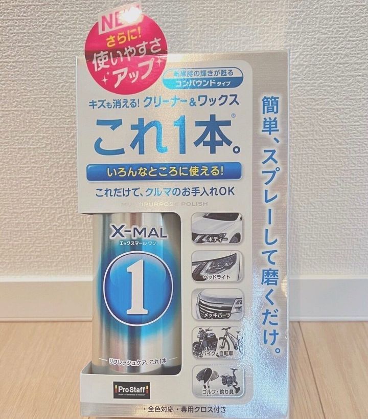洗車後にしっかり水気を取り除いたら、このスプレーを使って拭くだけで細かな傷を目立たなくしてツヤを出し、ピカピカに輝かせ汚れづらくなります。ヘッドライトの黄ばみ取りにも。