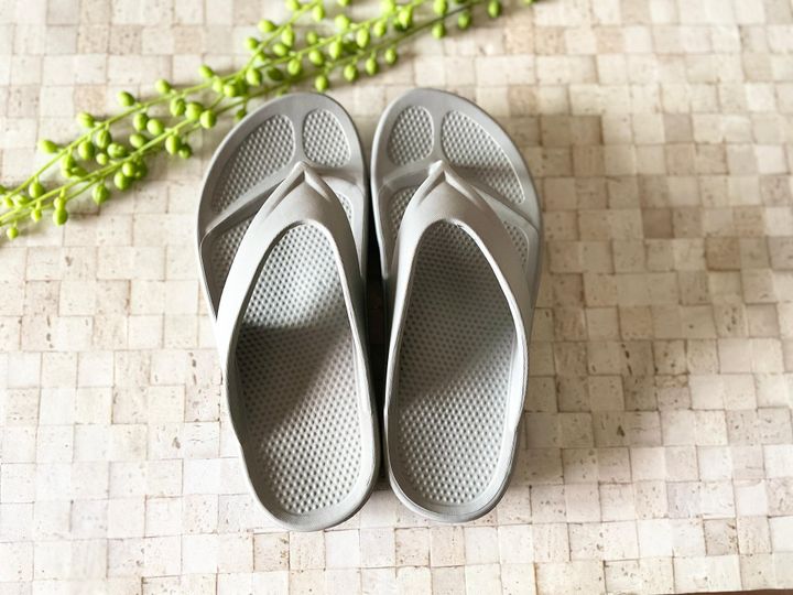 一見ふつうのビーチサンダルかな?と思いますが、これが流行のリカバリーサンダルに激似と話題のアイテム。