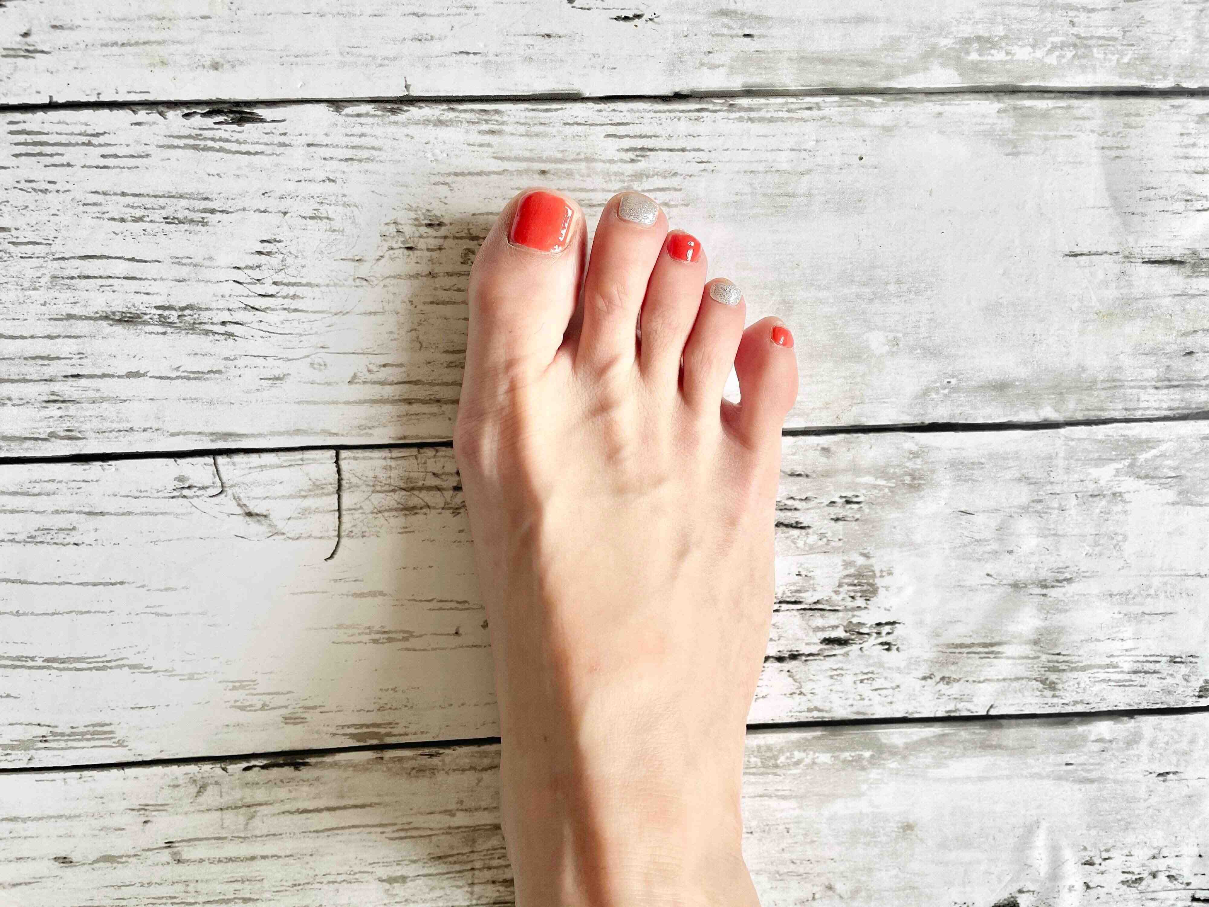 フットネイルって、手から離れていますから自分ではちょっとやりにくいですよね。その点シールなら貼るだけだからめちゃくちゃラク。