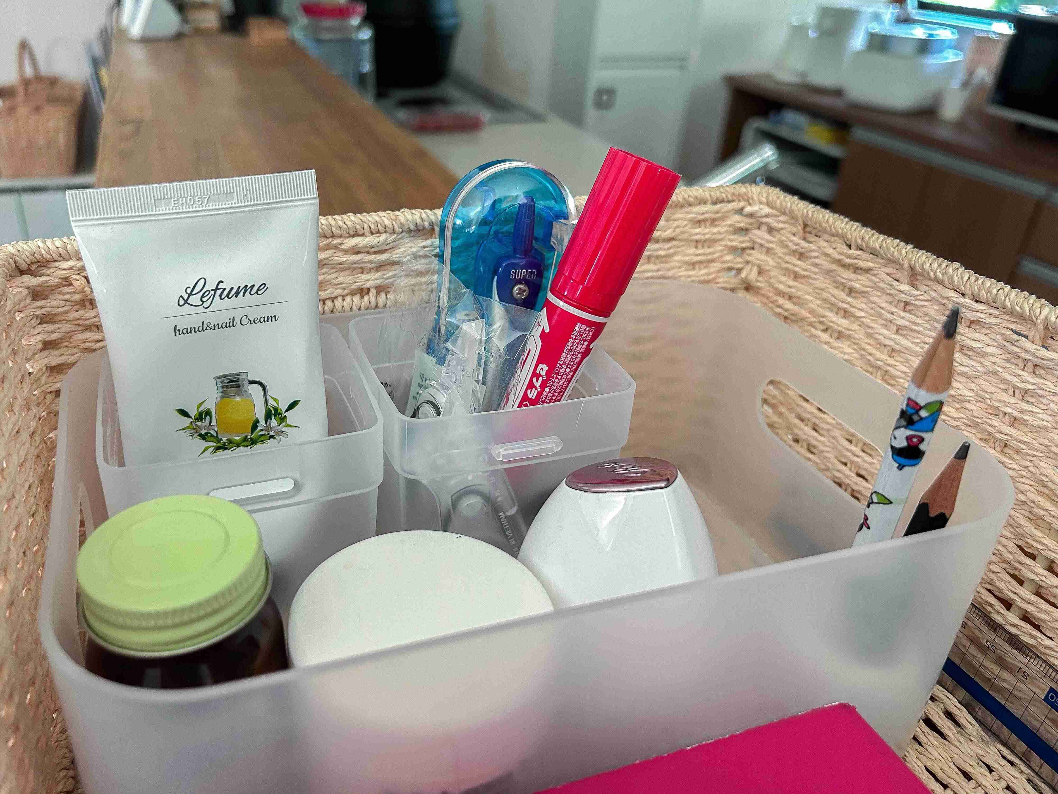 「くつした整理カップ」に入れてカゴの中に収納しておくと、