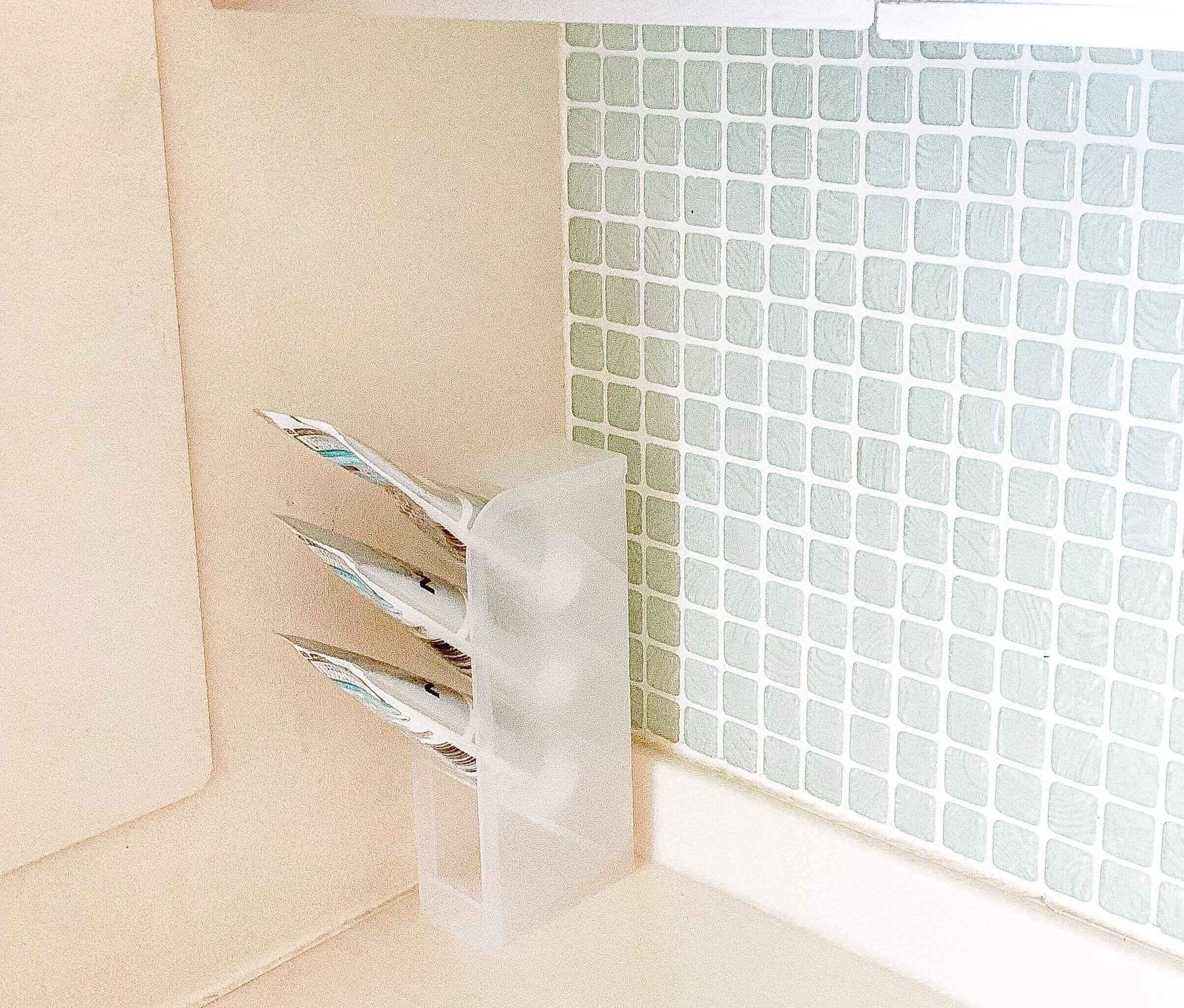 わが家では洗面台で歯みがき粉入れに活用しています。