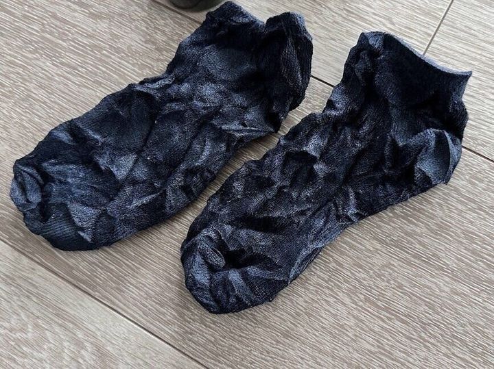 しっかりと圧縮されたソックスをゆっくりと広げると、ショート丈ソックスに変身します。シワが気になるところですが、災害時にシワを気にする余裕はないはずです。
