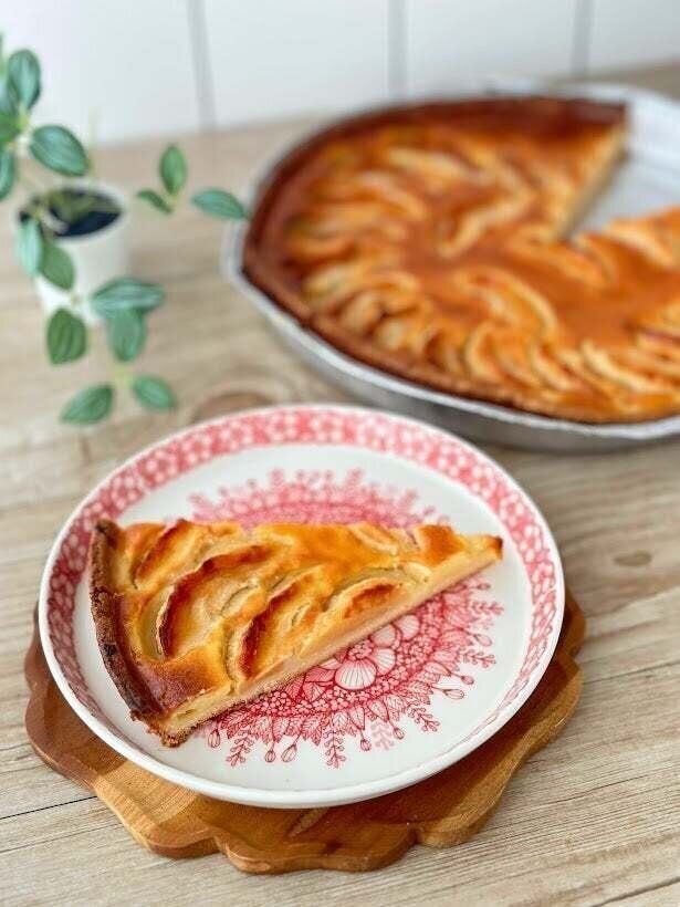 クレームフレーシュを贅沢にフィリングに使い、リンゴといっしょにオーブンで焼き上げたタルトです。