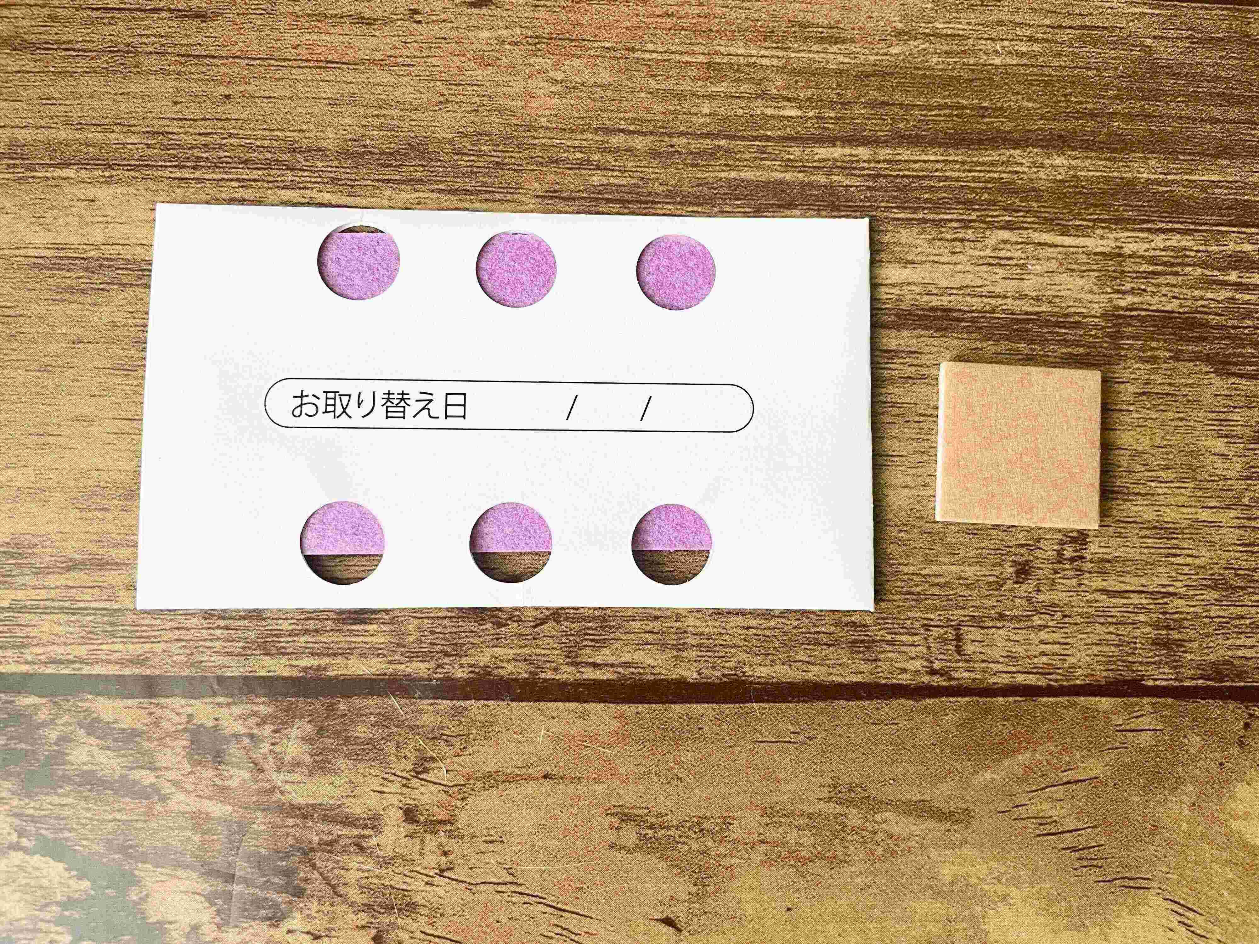 また、紫色が最初より薄くなることでも交換時期がわかります。日付を書き忘れたときには、色で判断もできますよ。