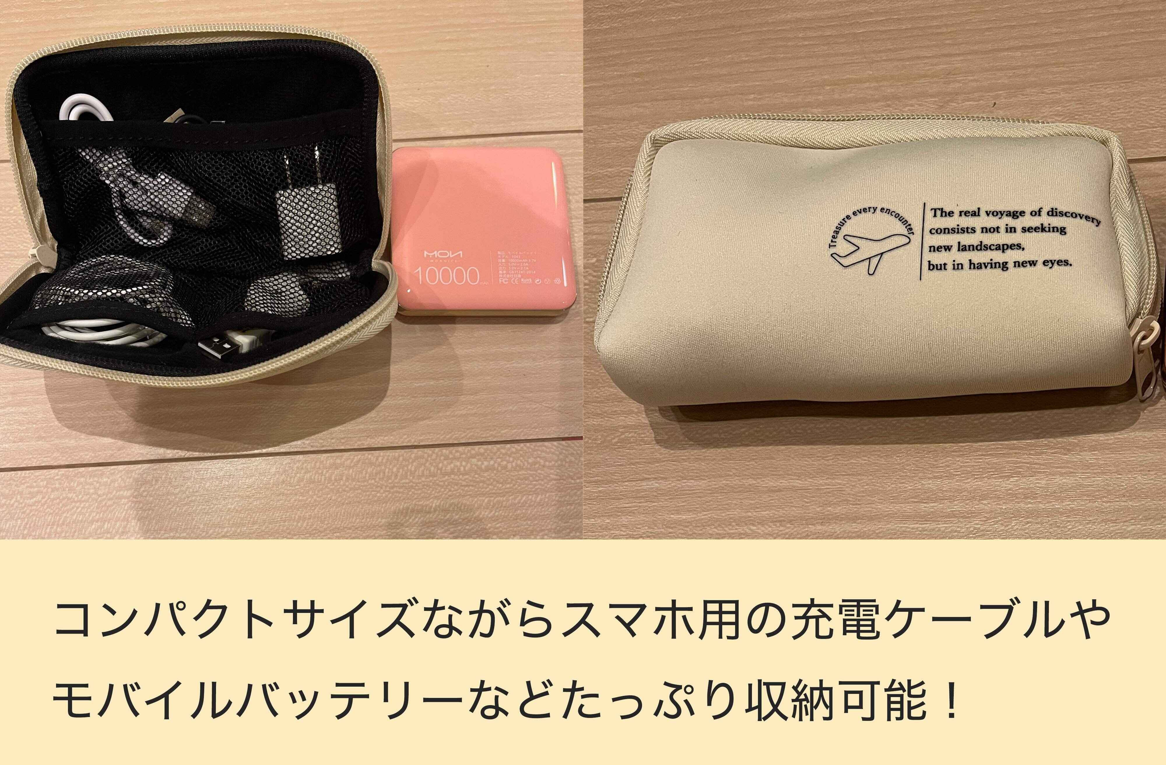 小型のモバイルバッテリーも入り、旅行で必須なアイテムはひととおり収納できました!
