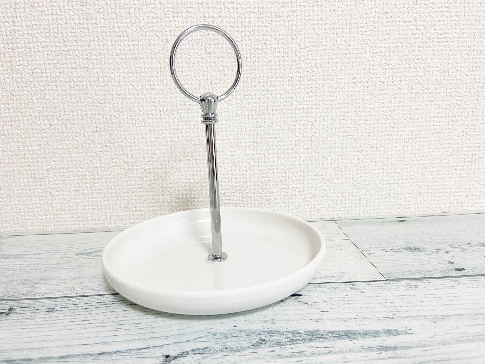 購入品2品目は「カスタートレイ」(330円)。リングの持ち手が付いたシンプルなカスタートレイは調味料などを並べるのにおすすめ。別売りの「調味料入れ」と一緒に使うとより一層町中華気分を味わえます。