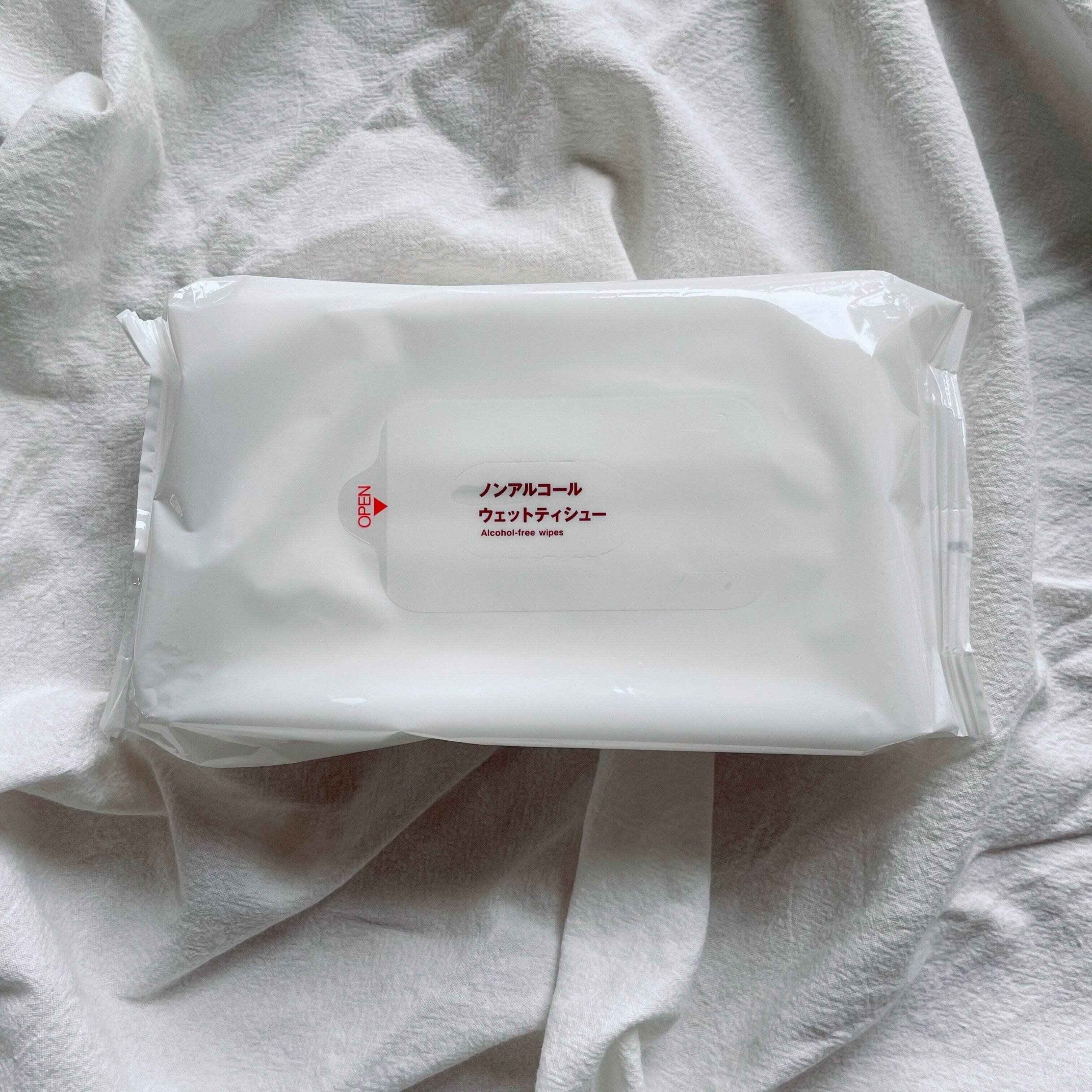 「赤ちゃんのおしりを拭くためじゃないけどなぁ…」と思いつつ使っていましたが、無印良品のシンプルなパッケージを見たら買わずにはいられません。