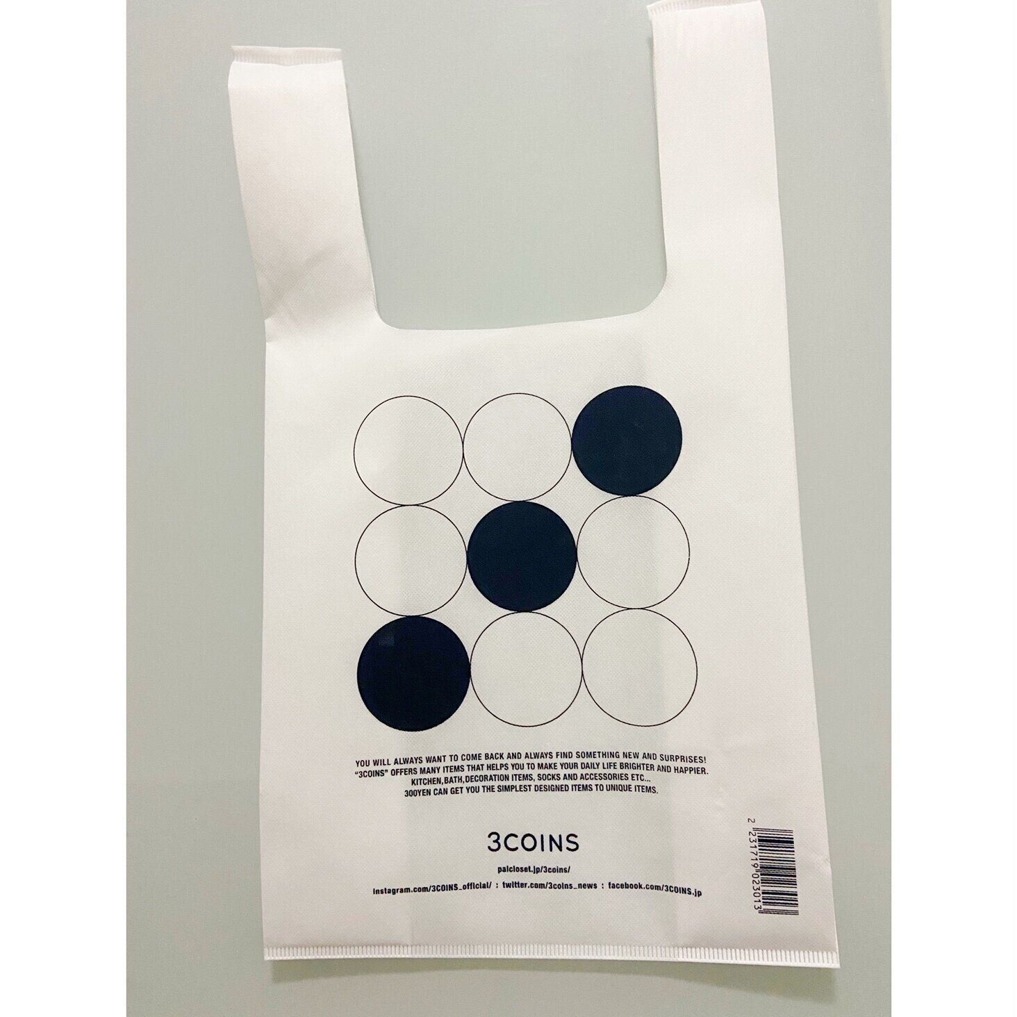 3COINSのレジで購入できる「不織布エコバッグ」(55円)は、繰り返し使えるレジ袋のようなデザインのエコバッグです。不織布のエコバッグは軽くて、たたむとハンカチくらいのサイズ感。持ち歩きしやすいエコバッグです。サブバッグとして使用するのもカワイイですよ。