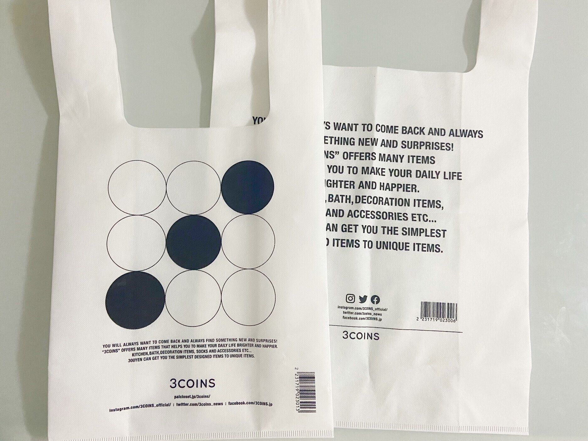 購入する際は、3COINSのレジで不織布エコバッグだけでも販売してくれるので店員さんに問い合わせてみてくださいね。
