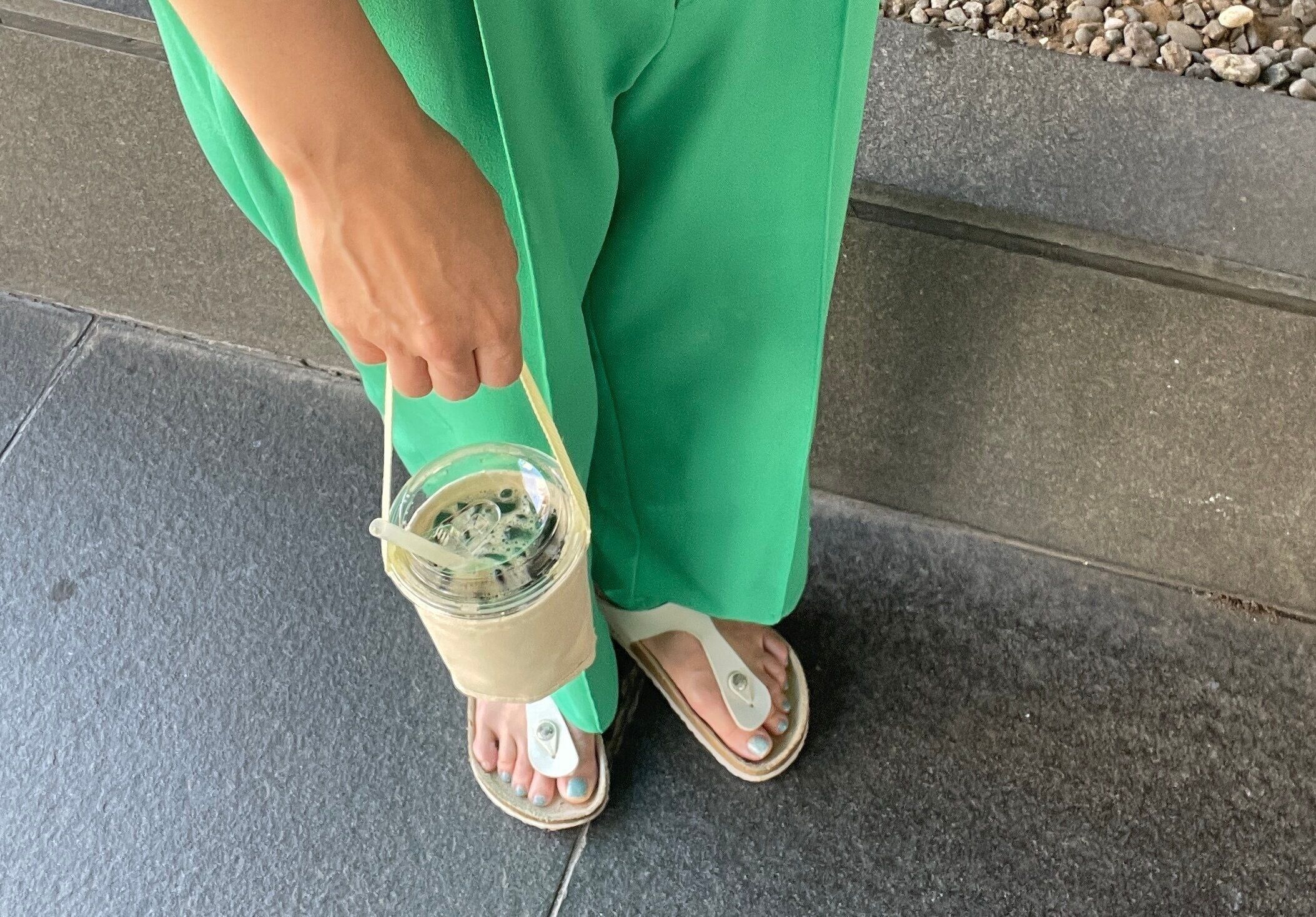 コーヒーをテイクアウトすると、手の平で包むように持って歩かないといけません。手を下ろさずに体の前でキープするのも結構大変です。「ゆっくり飲みたいけれど、持ち続けるのも嫌だな」なんて思うことも……。