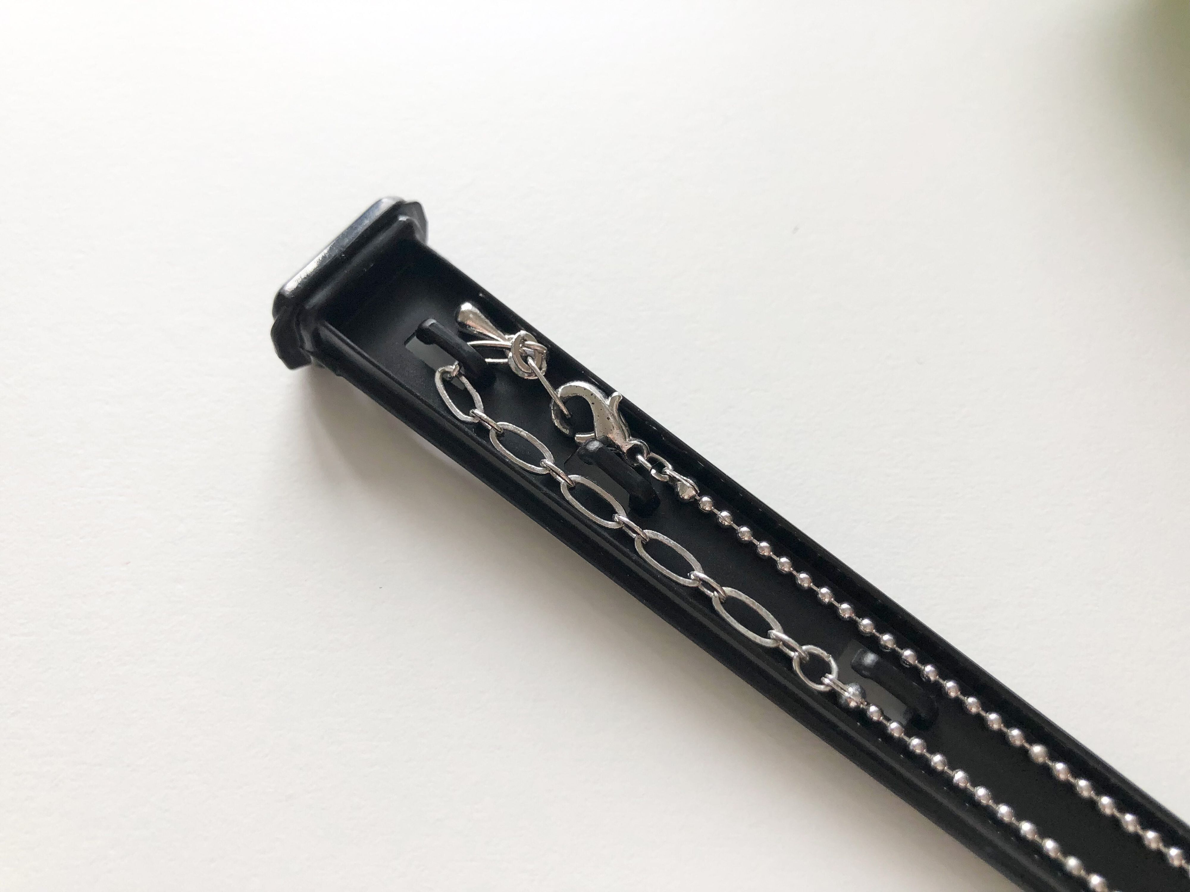 そして、ケースの最下部にある突起にチェーンを通して固定します。