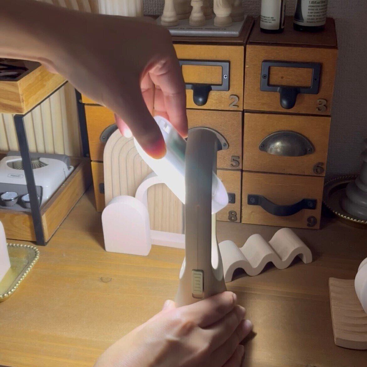 ライト部分をくるっと回すと、手元を照らすことができるんです!