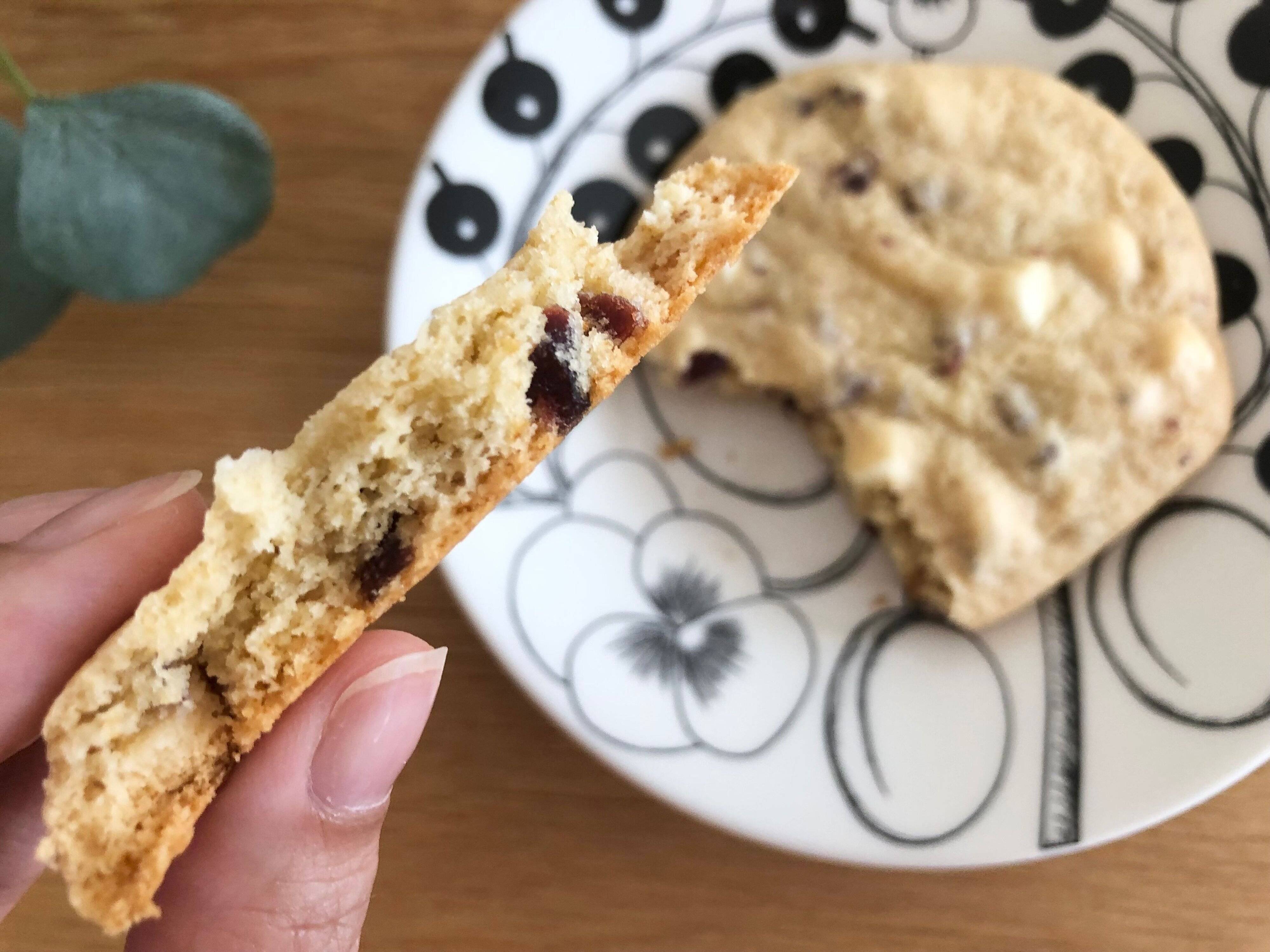 まろやかな味わいのホワイトチョコチップとクランベリーの甘くジューシーな味わいがすごくマッチしていて、とってもおいしい!